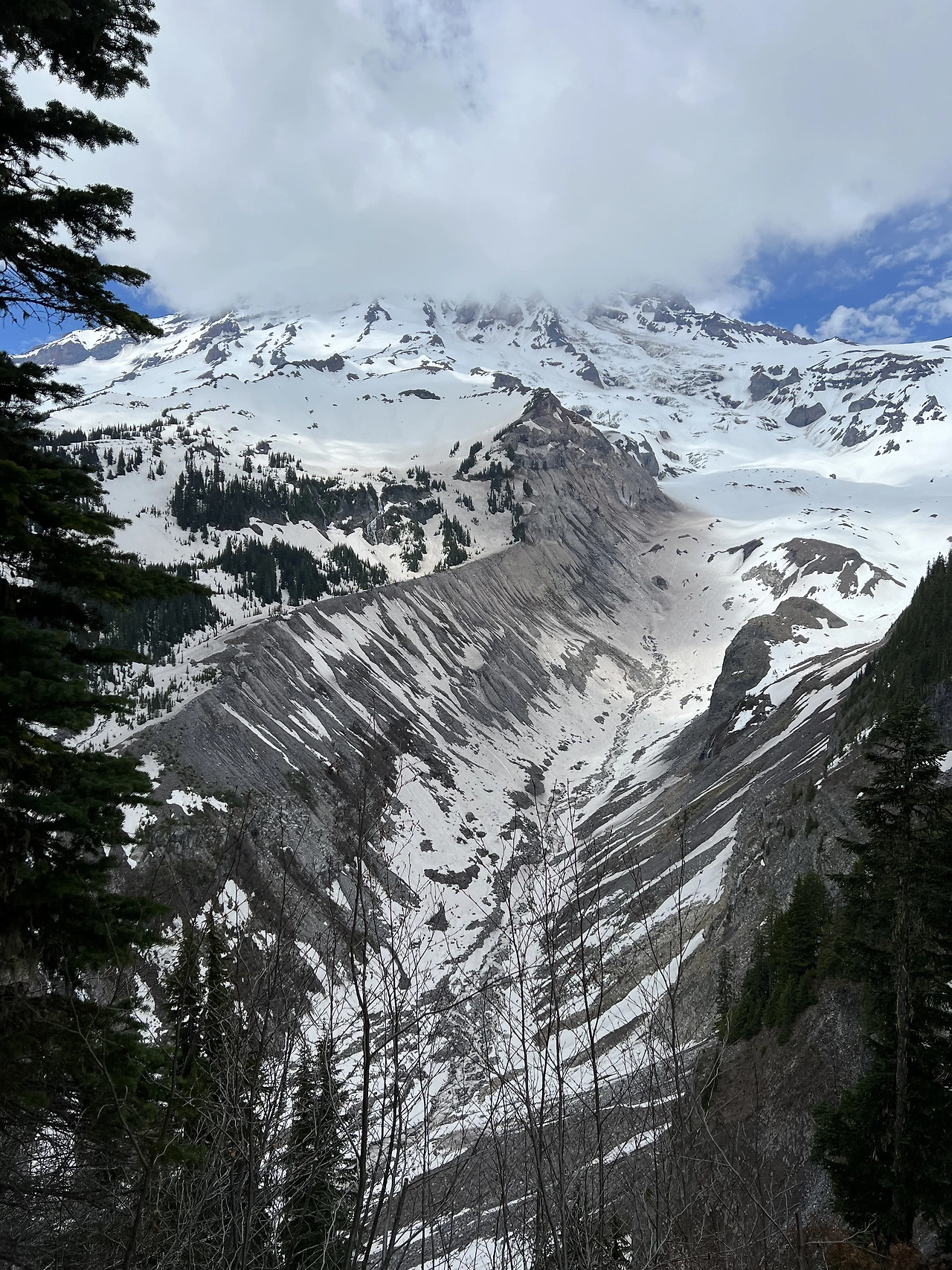 눈 때문에 제대로 된 하이킹을 할 수 없어 아쉬운 마음을 달래러 추가로 Nisqually Vista Trail을 걸었다. 이 트레일은 파라다이스 캠프 주차장에서 걸어서 5분 정도 떨어진 트레일로, 트레일을 15분 정도만 걸으면 레이니어산과 거대한 협곡을 함께 볼 수 있는 뷰 포인트가 있는 코스이다. 짧은 하이킹이지만 엄청나게 거대한 협곡을 바로 눈앞에서 볼 수 있는 효율 만점의 코스이기도 하다.
