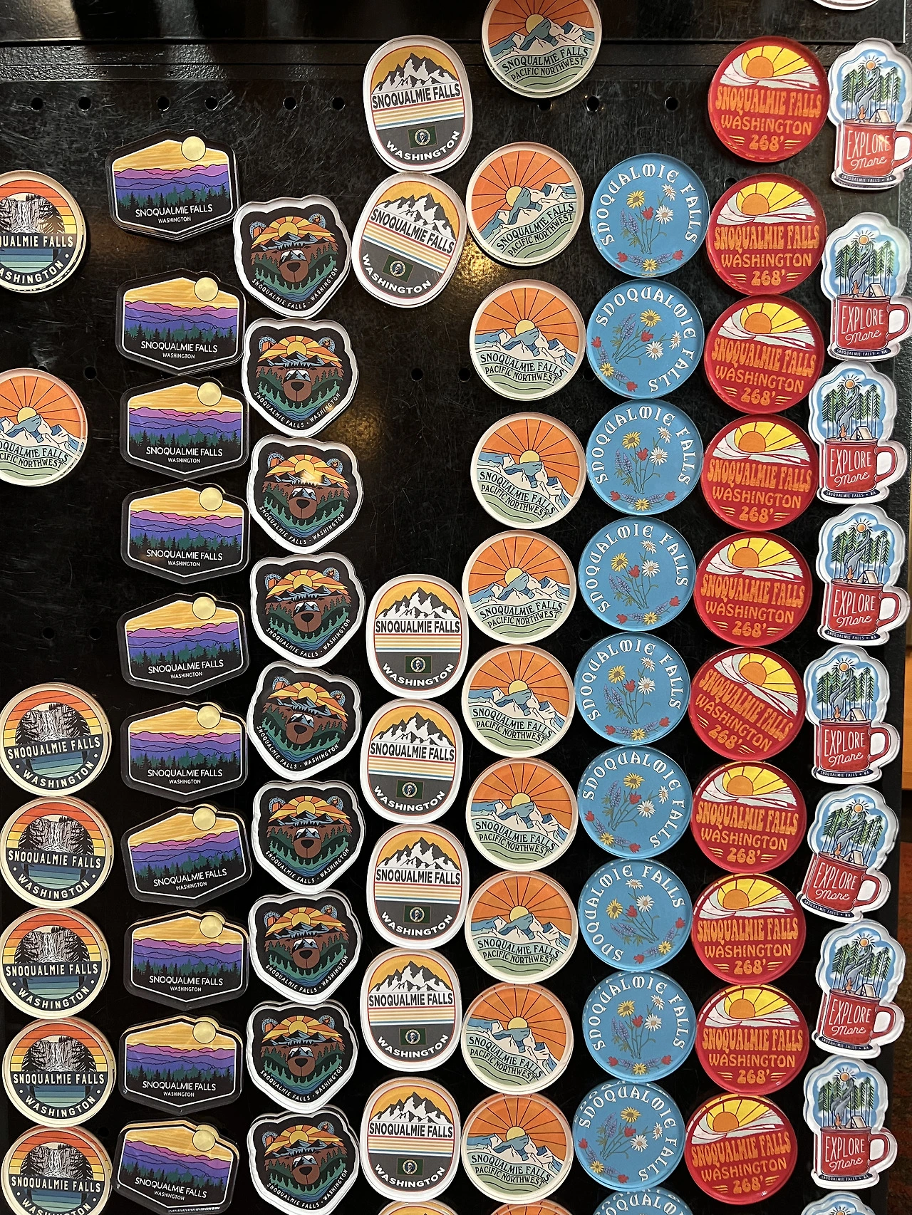 응? 그런데 이게 웬걸, 도착하고 보니 이곳은 주차장 한편에 'Snoqualmie Falls Gift Shop'이라는 기념품 가게까지 갖추고 있는 (하이킹 코스라기보다는) 유명한 관광지였다! 하이킹 슈즈, 하이킹 스틱, 하이킹 재킷, 하이킹 배낭에 Water Bladder (배낭에 넣을 수 있도록 납작하게 디자인된 물주머니로, 긴 호스가 달려있어서 가방을 벗어서 물병을 꺼내지 않아도 호스로 바로 물을 먹을 수 있도록 만들어져 있어서 하이킹을 하면서 물 마시기에 아주 편한, 일종의 물통이다.)까지 야무지게 챙겨 온 나 자신이 살짝 민망해지는 순간이었다.
