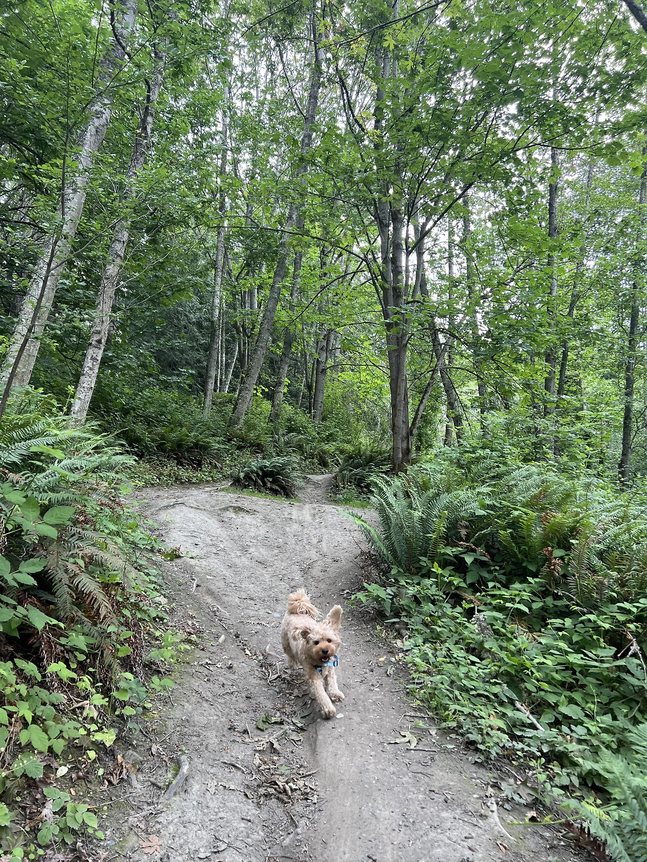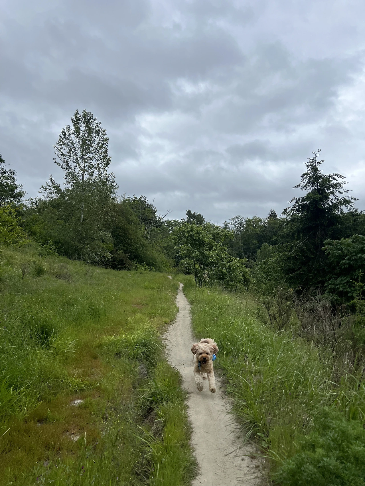 트레일에 사람이 거의 없어서 (하이킹을 하는 몇 시간 동안 사람을 10명도 안 만난 것 같다) 서울이를 오프 리쉬(off leash)로 해주었더니, 신나서 뛰어다니느라 귀가 펄럭거리면서 뛰어다니는 귀여운 사진을 여러 장 찍을 수 있었다. 트레일 자체는 크게 산을 오르거나 내리는 경사는 없고 소소하게 언덕을 내려갔다가 올라오거나, 숲에 둘러 쌓여있다가 갑자기 탁 트인 하늘이 나오는 그런 정도의 코스라 강아지와 산책하는 느낌으로 정처 없이 걷기 좋았다.