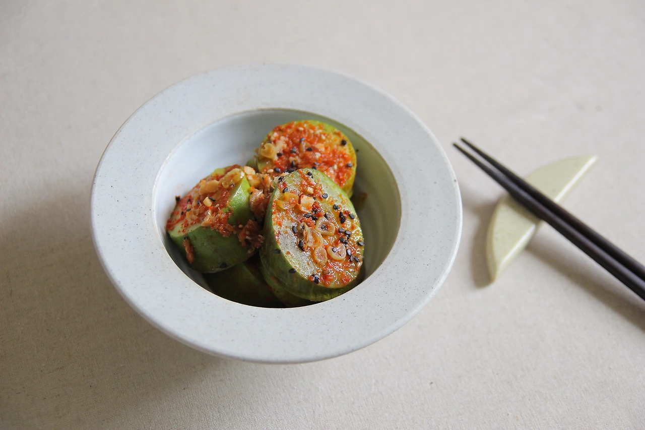 이 음식은 그러니까 굉장히 묘한 포인트가 있는데 찌개라고 하기에는 국물이 적고 그렇다고 찜이라고 하기에는 국물이 자박자박하고 그래서 조림이라고 하기에는 생선조림 이런 것과는 차이가 있고 시래기 된장 지짐처럼 그런 지져먹는 음식이라고 하기에는 호박은 무르고 국물이 흥건한 느낌인 것이다. 밭에서 따온 둥그런 호박을 일정하지 않은 모양으로 큼직하게 잘라서 민물새우를 잔뜩 넣고 고춧가루와 마늘을 넣어서 끓인 것이라고 짐작만 하고 있는데 뜻밖에 맛은 감칠맛도 돌고 칼칼하니 좋아서 어린 시절부터 매운 거 좋아하던 나는 유일하게 입맛에 맞는 할머니의 음식으로 기억하고 있었던 것이다.