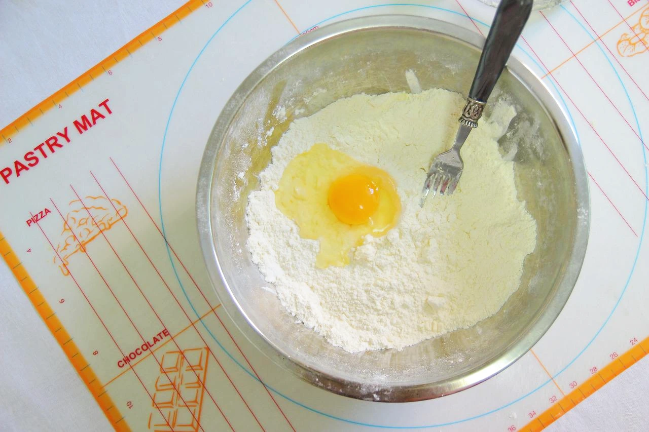 6. 반죽은 단단히 뭉치는 게 아니라 푸슬푸슬 대강 덩어리들이 질 때까지만 한다. (손으로 주무르지 않는다.)