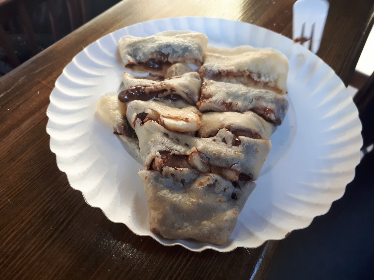 프랑스와 독일 모두와 국경을 맞대고 있는 덕에 룩셈부르크에서는 프랑스와 독일의 음식을 모두 맛볼 수 있는 기회를 얻을 수 있다. 우리가 방문한 시기에 딱 알맞게 도시 중앙의 기욤 광장에서 장이 열려 그곳에서 맛있는 음식들을 저렴하게 접할 수 있었다. 우선 독일의 명물인 소시지, 그중에서도 커리 부어스트를 맛보았는데 숯불에 구운 소시지의 맛도 풍미가 있었지만 소스로 뿌려져 나온 커리 소스가 매우 맛이 좋았다. 일반적으로 우리가 아는 카레맛은 아니고 향신료 맛이 가미된 달짝지근한 소스라고 생각하는 것이 나을 것 같다. 시원한 맥주와 함께 먹으니 갈증가 허기짐이 한 번에 해결되었다. 역시 소시지는 최고의 맥주 안주인가. 오늘만큼은 치킨에 대한 애정을 내려놓을 수밖에 없을 것 같다. 커리 부어스트를 양껏 먹은 후 다음은 프랑스 음식을 먹어보기로 했다. 시장 한쪽에 자리 잡은 크레페 가게에서 바나나를 곁들인 초콜릿 잼 크레페를 주문했다. 만드는 과정을 옆에서 보니 우리나라 메밀 전병을 만드는 것과 흡사하다. 역시나 제조자의 숙련된 손놀림이 있어야 균일한 모양의 결과물을 얻을 수 있다는 것도 같다. 잘 익은 바나나를 썰어 넣고 초콜릿 잼을 발라 어느새 내 손에 쥐어진 크레페의 달큼한 향기에 정신이 혼미해졌다. 한입 베어 무니 역시 예상대로 맛있었지만 약간 아쉬운 점이 있었다면 초콜릿 잼을 좀만 더 넉넉히 발라줬으면 하는 것이었다. 시골 장의 인심은 한국에서만 기대해야 하는 것 같다.