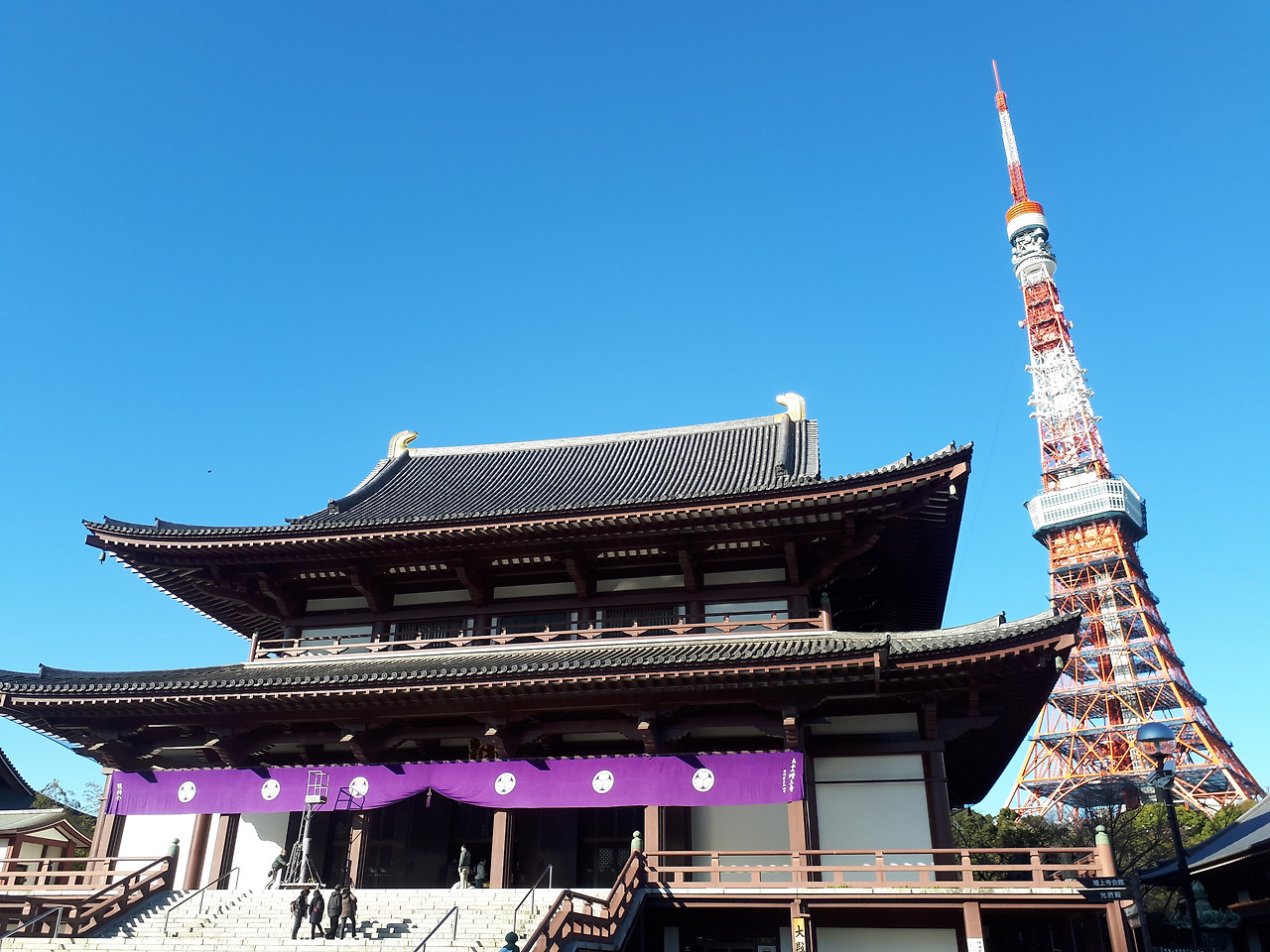 어느 도시나 그 도시를 상징하는 구조물은 있기 마련이다. 특히 그 구조물은 타워인 경우가 많은 것 같다. 서울에는 남산타워가 있고 도쿄에는 도쿄타워가 있다. 물론 그 원조격은 파리의 에펠탑이겠지만 말이다. 특히 도쿄타워는 티비 송신탑인 실용적인 기능도 있지만 그 강렬한 붉은 색이 사람의 시선을 사로잡는 것 같다. 도시 중 산지가 차지하는 비율이 큰 서울과는 달리 도쿄는 거의 평지에 가까운 곳에 만들어진 도시이기 때문에 우뚝 솟은 도쿄타워를 쉽게 찾아볼 수 있다. 비록 도쿄에서 가장 높은 탑이라는 찬사는 새로 만들어진 스카이트리가 가져가버렸지만 그래도 도쿄타워는 아직까지 도쿄시민들의 사랑을 받고 있는 듯하다. 친구 녀석도 스카이트리는 크기만 할 뿐 예쁘지 않아 정감이 가지 않다고 했다. 역시나 예나 지금이나 도쿄의 상징은 도쿄타워인 것 같다고. 도쿄에 있는 사찰과 어우러진 도쿄타워의 모습은 전통과 어우러진 현대 도시, 도쿄의 한 단면을 보여주는 듯하다.