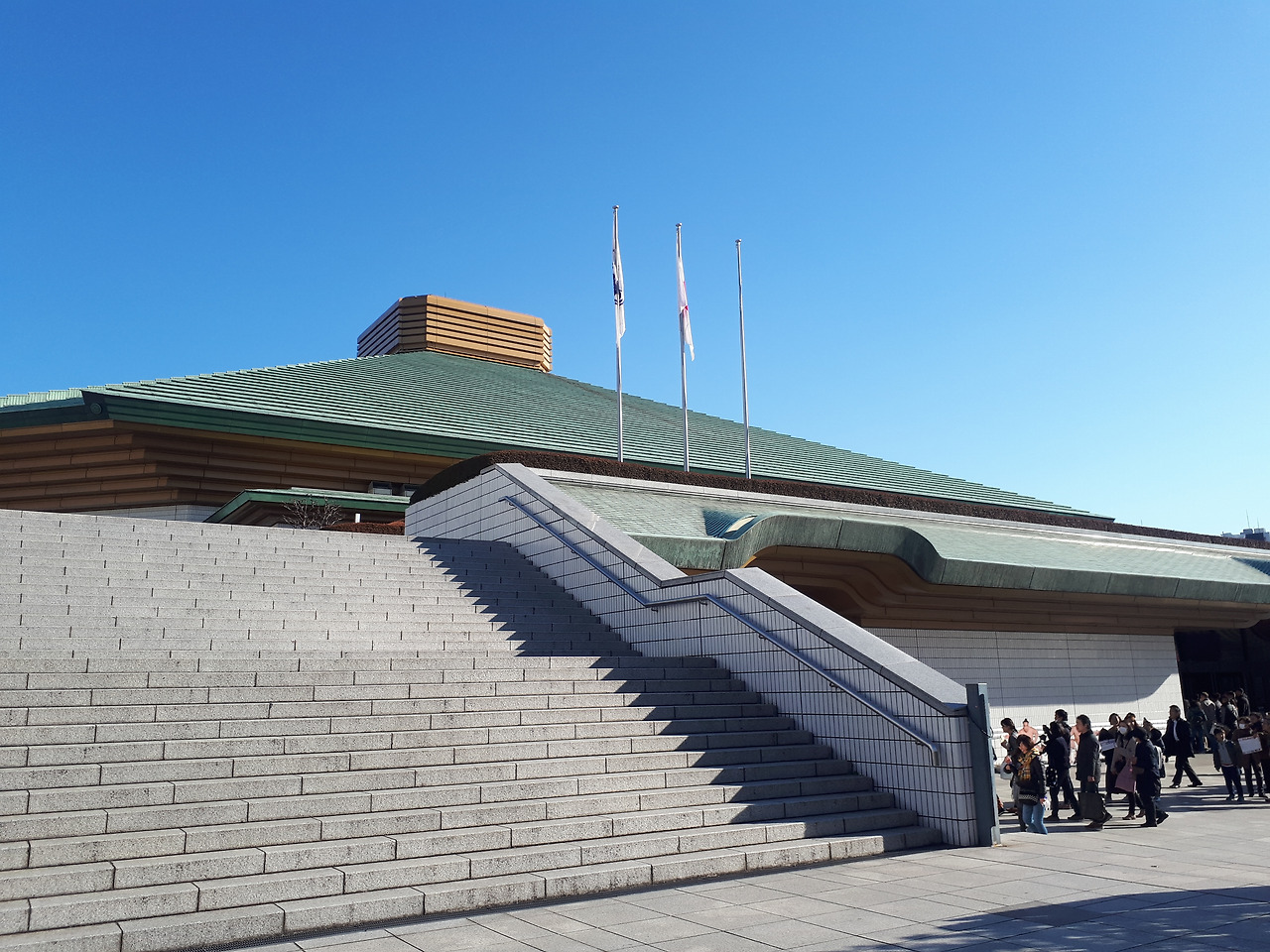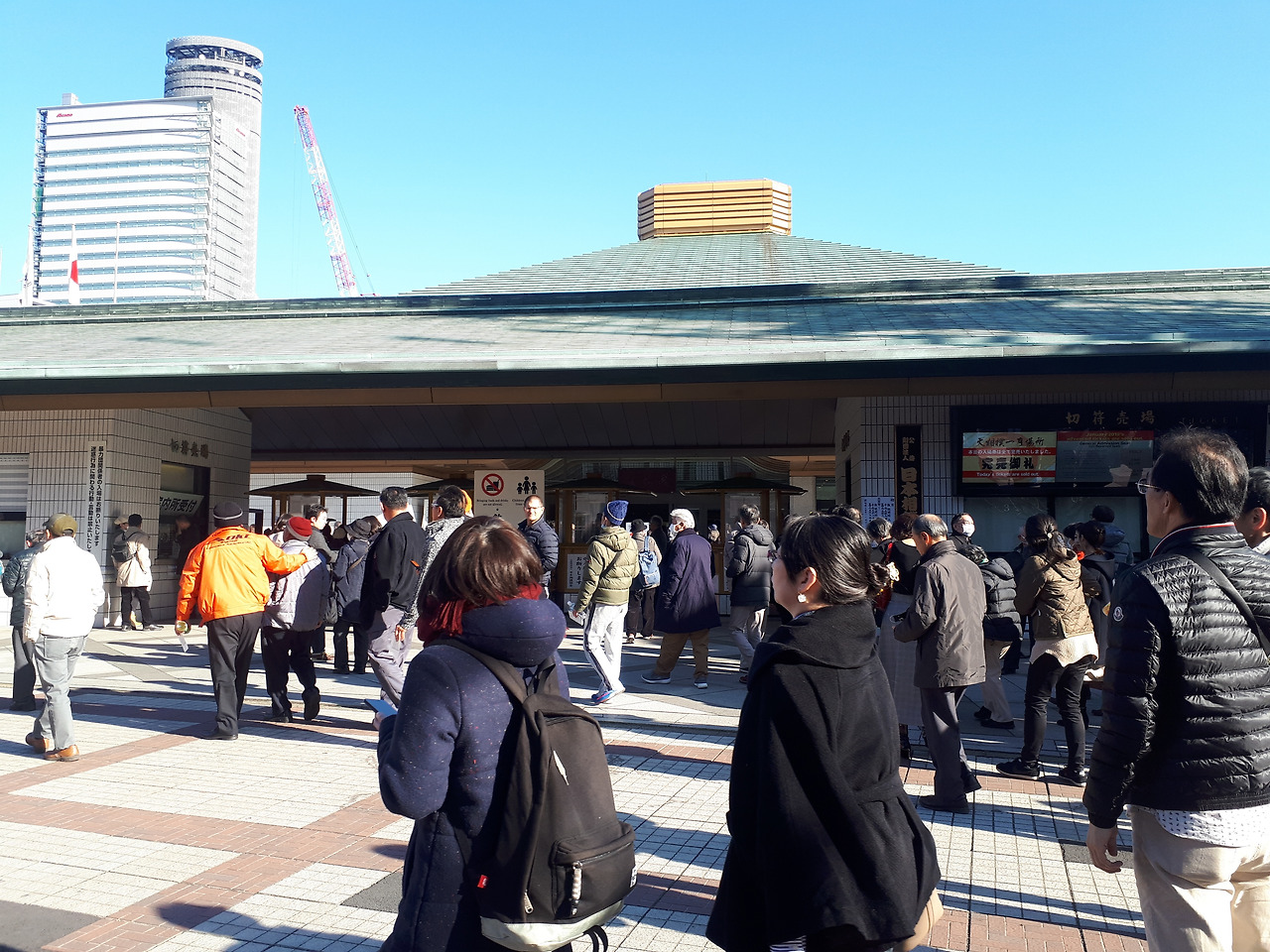 보통 관광객들이 잘 가지 않는 곳이지만 일본인들에게는 의미가 있는 곳이 있다. 료고쿠다. 처음에 이곳에 갈 계획이라고 했을 때 도쿄에 사는 친구조차도 거기에 대체 왜 가느냐고 되물을 정도였다. 그정도로 한국사람들에게는 생소한 이곳은 일본 스모 계에서는 꽤나 중요한 곳이다. 왜냐하면 료고쿠는 바로 스모 경기가 열리는 국기관이 있는 곳이기 때문이다. 스모는 모래판 위에서 두 선수가 힘과 기술을 겨루는 모습이 우리나라의 전통 씨름과 닮아있다고 볼 수 있으나 우리나라 씨름은 주로 당기는 힘을 많이 사용하는 데에 반하여 일본의 스모는 상대를 밀어내는 힘을 더 많이 사용한다는 점에서 차이점을 가지고 있다. 우리나라에서는 전통 씨름의 인기가 많이 사그라들었지만 일본에서는 스모가 꽤나 인기가 좋다. 스모선수들을 역사라고 부르며 존중하고 우리나라의 천하장사 격인 요코즈나라도 탄생하는 날이면 그 선수의 식단이나 운동방법까지 방송에서 화제가 될 정도로 일본인들은 스모에 관심이 많다. 때문에 스모 경기가 있는 날이면 료고쿠는 인산인해가 되고 먼발치에서나마 유명한 스모선수들을 보려고 사람들이 모인다. 내가 료고쿠에 방문한 이 날도 운이 좋게 스모경기가 있는 날이었는데 내딴에는 표가 있다면 들어가서 관람할 계획이었으나 막상 국기관에 방문해보니 그날 경기표는 새벽에 진작에 매진되어버렸단다. 일본인들의 스모에 대한 사랑을 너무 과소평가했나보다. 아쉽게도 결국 이 날은 국기관 근처 식당에서 스모선수들의 식단으로 알려진 창코나베를 먹으며 티비로나마 스모경기를 보는 것으로 스모를 보지 못한 아쉬움을 달랠 수밖에 없었다.