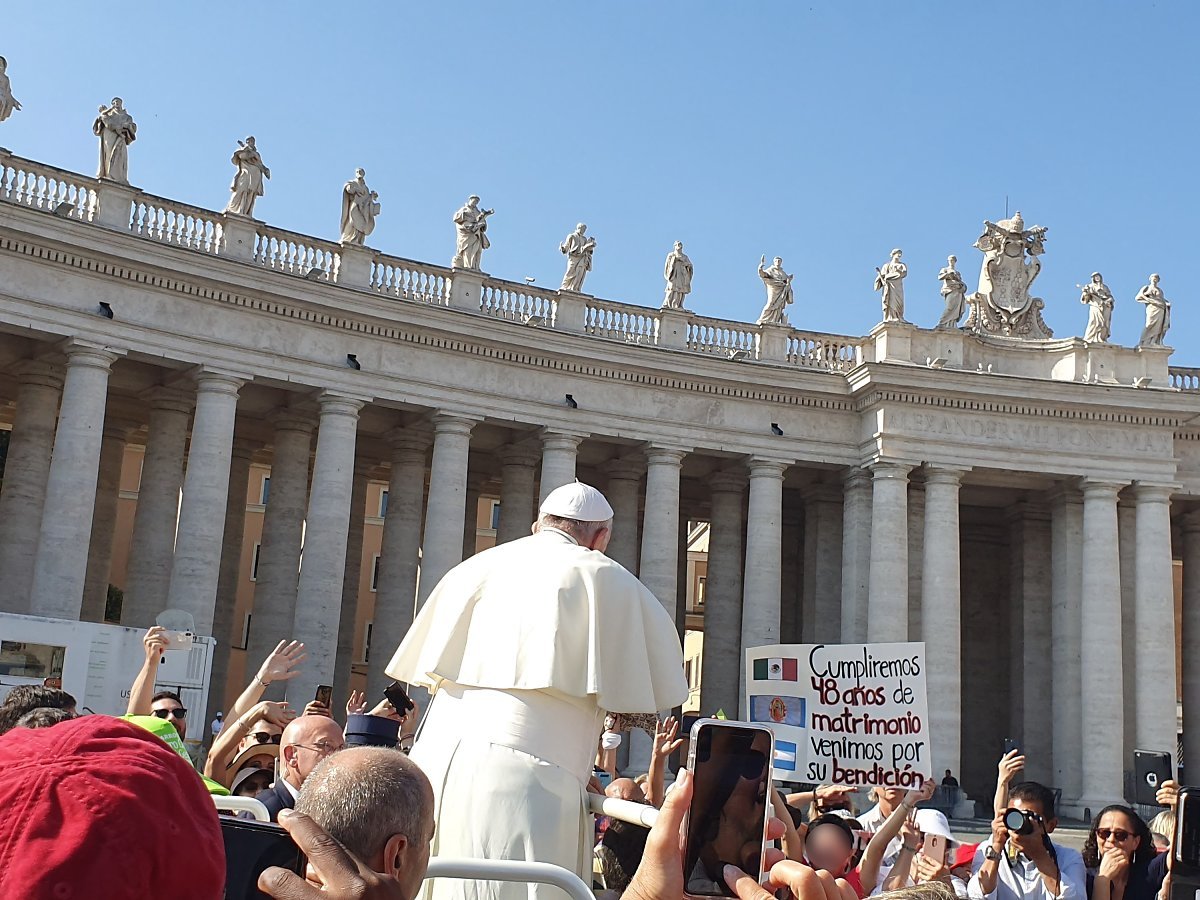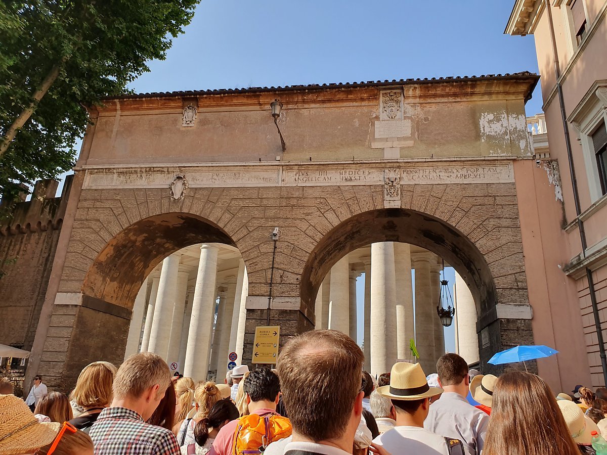 현재 교황인 프란체스코 성하는 자애로운 성품으로 가톨릭 신자들 뿐만 아니라 전 세계 사람들로부터 사랑을 받고 있다. 신도인 나의 입장에서도 꼭 한번 알현하고 싶다는 마음은 굴뚝같았지만 실제로 이루어질 가능성은 없었기에 교황 성하가 머무는 바티칸에 방문하면서도 큰 기대는 하지 않았다. 하지만 성 베드로 성당 근처에 다다를 무렵 수많은 인파를 보면서 살짝 기대감이 생기기 시작했다. 슬쩍 앞에서 먼저 기다리고 있던 미국인 관광객에게 물어보았다. 혹시 이 줄이 교황 성하를 만나기 위해 기다리는 줄이냐고.