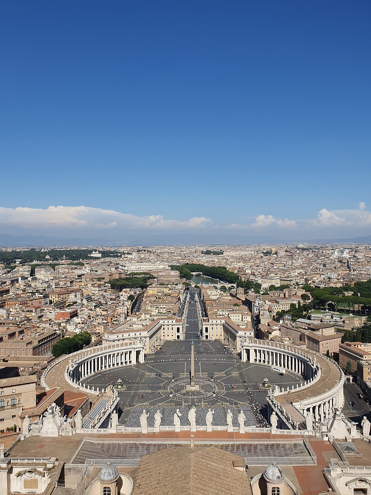 한참을 땀을 흘리며 올라간 쿠폴라에서 나는 베드로 성당의 열주들을 만나볼 수 있었다. 물론 내가 아주 심한 고소공포증이 있기 때문에 그 감동은 오래가지는 못했지만 말이다. 그래도 힘들게 올라온 것이 매우 아까워서 최대한 오래 바티칸의 풍경을 눈에 담아두려고 했다. 두번 올라오기는 싫었으니까.