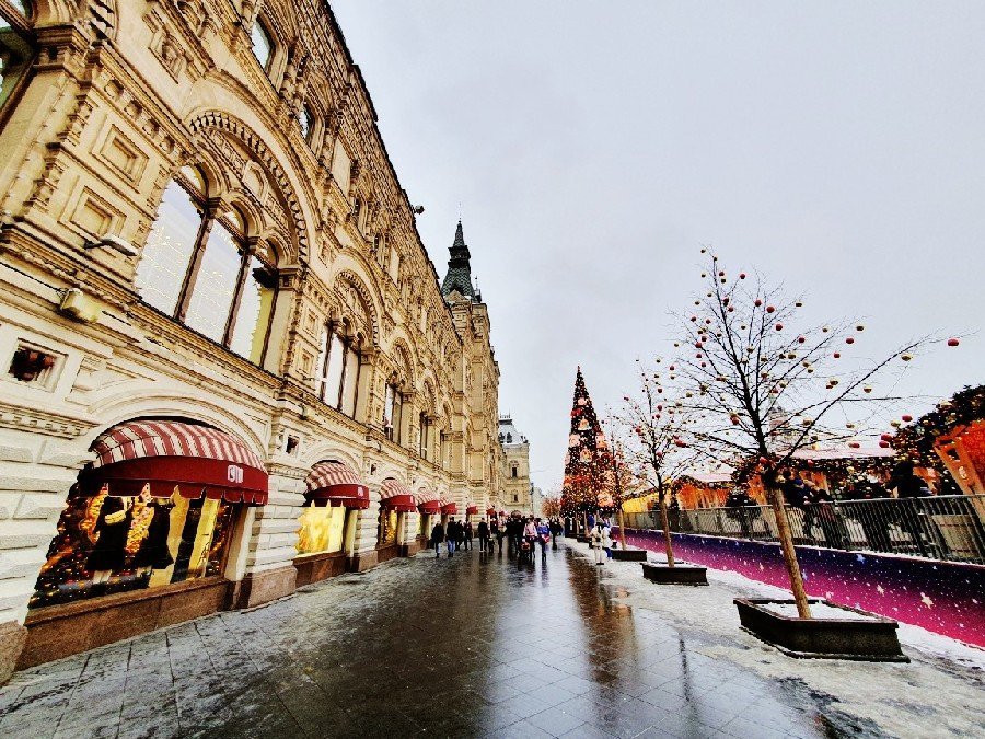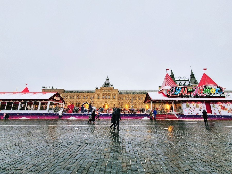 이것은 러시아가 다른 서방국가들과는 다른 달력을 써왔기 때문이다. 러시아는 정교회를 믿기 때문에 전통적으로 카이사르가 만든 율리우스력을 썼고 서방국가들은 16세기 그레고리우스 교황이 만든 그레고리력을 써왔기 때문이란다. 율리우스력에 따르면 크리스마스가 1월 7일인 셈이 되기 때문에 나는 한국에서 누리지 못한 크리스마스 분위기를 뒤늦게나마 러시아에서 느낄 수 있게 되었다. 붉은 광장 한가운데에는 스케이트 장이 들어서있고 광장 한쪽에 위치한 굼 백화점 안에도 크리스마스의 분위기를 한껏 느낄 수 있었다. 아마도 코로나 바이러스가 아니었다면 광장은 사람들로 가득 찼을 것 같다.