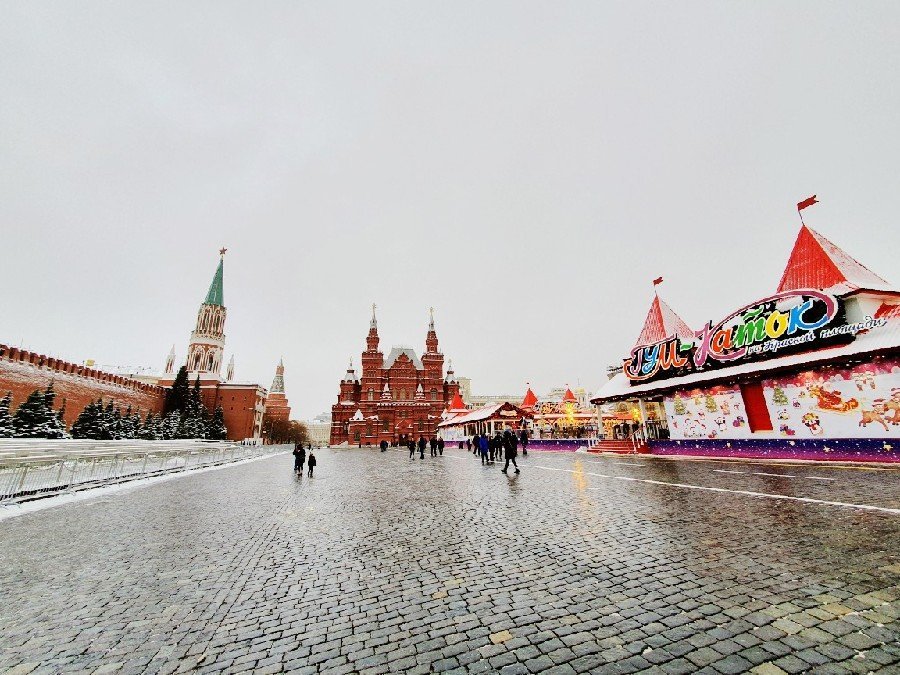 레닌의 묘를 지나 광장 안쪽으로 시선을 돌렸다. 아무래도 크리스마스 시즌이라 그런지 광장에는 크리스마스 분위기가 많이 났다. 사실 내가 광장을 방문한 시기는 1월 초 정도였는데 보통 대부분의 국가들에게는 12월 25일부터 12월말까지 정도가 크리스마스 시즌이라고 받아들여지지만 러시아에서는 1월 초부터 1월 중순까지의 기간이 크리스마스로 여겨진다.