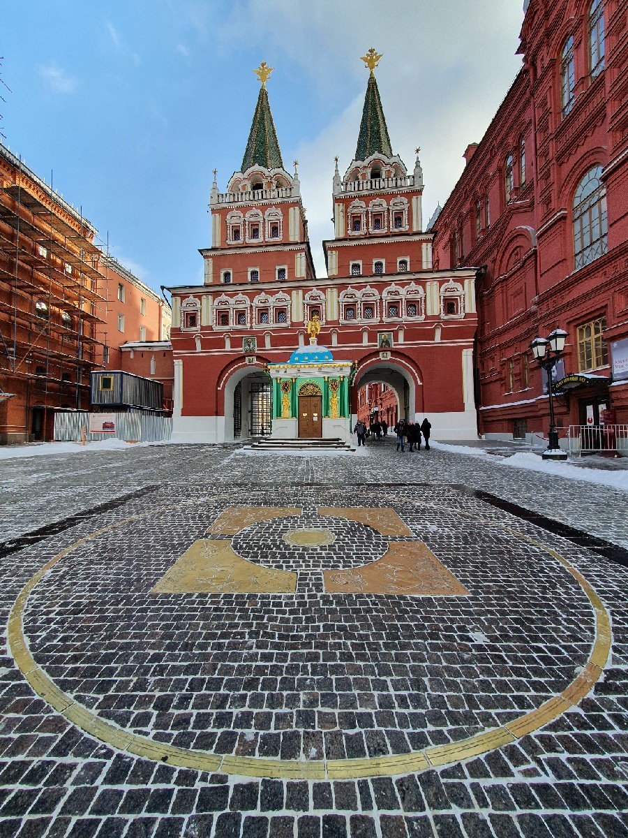 부활의 문을 지나면 부활의 문 반대편에 유독 사람들이 모여서 사진을 찍고 있는 곳이 보였는데 모스크바 도로의 원표가 있는 곳이다. 원표는 그 도시의 도로와 위치의 기준이 되는 표식을 말하는데 보통 서울에서 모스크바까지 몇키로인가 등의 기준을 정할 때 모스크바 쪽의 기준이 되는 곳이 바로 이 곳이다. 모스크바 도로의 원표는 청동을 그 재료로 삼아 원 모양으로 바닥에 표시되어 있었다. 사람들은 이 원표 안에 들어가 사진을 찍거나 동전을 던지고 있었는데 던진 동전이 원표 안으로 들어가면 행운을 가져다 준다고는 하는 그다지 성공하는 모습을 보기는 힘들었다. 붉은 광장을 빠져 나온 나는 붉은 광장 주변을 따라 걸으며 여행을 이어가기로 했다.