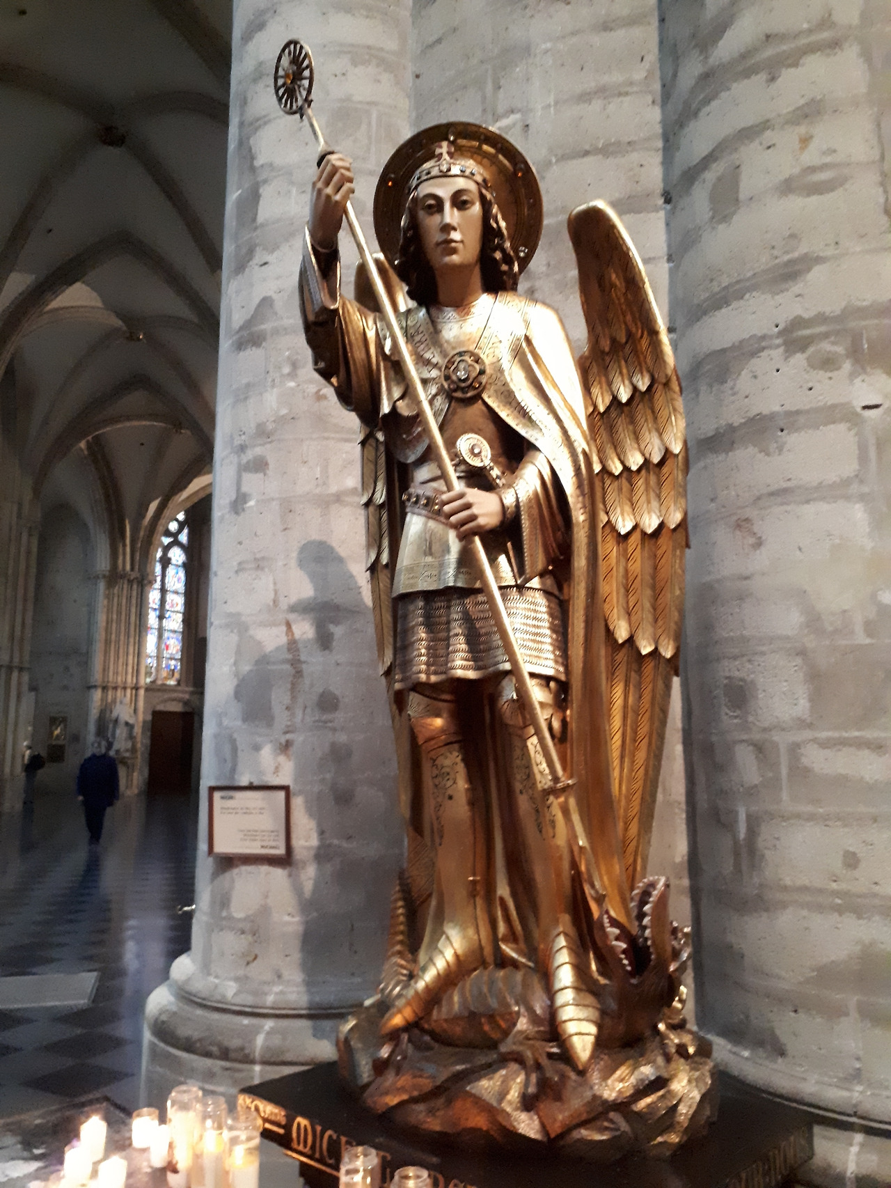 한때 벨기에와 네덜란드는 한 나라였었다. 엄밀히 말하면 네덜란드에 의한 일방적 합병이었지만 말이다. 지리적, 인종적. 역사적 유사성 때문에 두 나라는 종종 구별하기 어렵지만 그 두 나라가 영원히 함께하지 못한 이유가 있다. 우선 가장 큰 요소는 종교였다. 칼뱅파 등 신교를 신봉한 네덜란드와 달리 벨기에는 구교인 가톨릭을 믿었다. 아마 역사적인 이유도 한몫했을 터인데 원래 오스트리아와 스페인에 걸친 대 영토를 소유했던 합스부르크 왕가의 지배를 받았던 네덜란드와 벨기에는 그들의 자유를 억압하는 군주 펠리페 2세에게서 독립하고자 했으나 결국 독립을 이룬 것은 네덜란드 지역뿐이었기 때문이다. 벨기에는 그 이후 합스부르크 왕가, 프랑스 등의 지배를 받았기에 그들의 종교였던 가톨릭을 계속 믿게 되었다. 특히 프랑스와의 지리적 인접성과 그들에게 점령당했었던 역사 탓에 벨기에는 지금까지 불어를 공용어로 사용하고 있다. 브뤼셀에 위치한 생미셸 대성당은 벨기에의 이러한 모습들을 잘 보여주는 성당이다. 도시를 대표하는 거대한 가톨릭 성당 그리고 성당 내부에 놓여 있는, 프랑스인들이 좋아하는 미카엘의 동상은 벨기에에 미친 가톨릭과 프랑스의 영향을 잘 나타내고 있다.