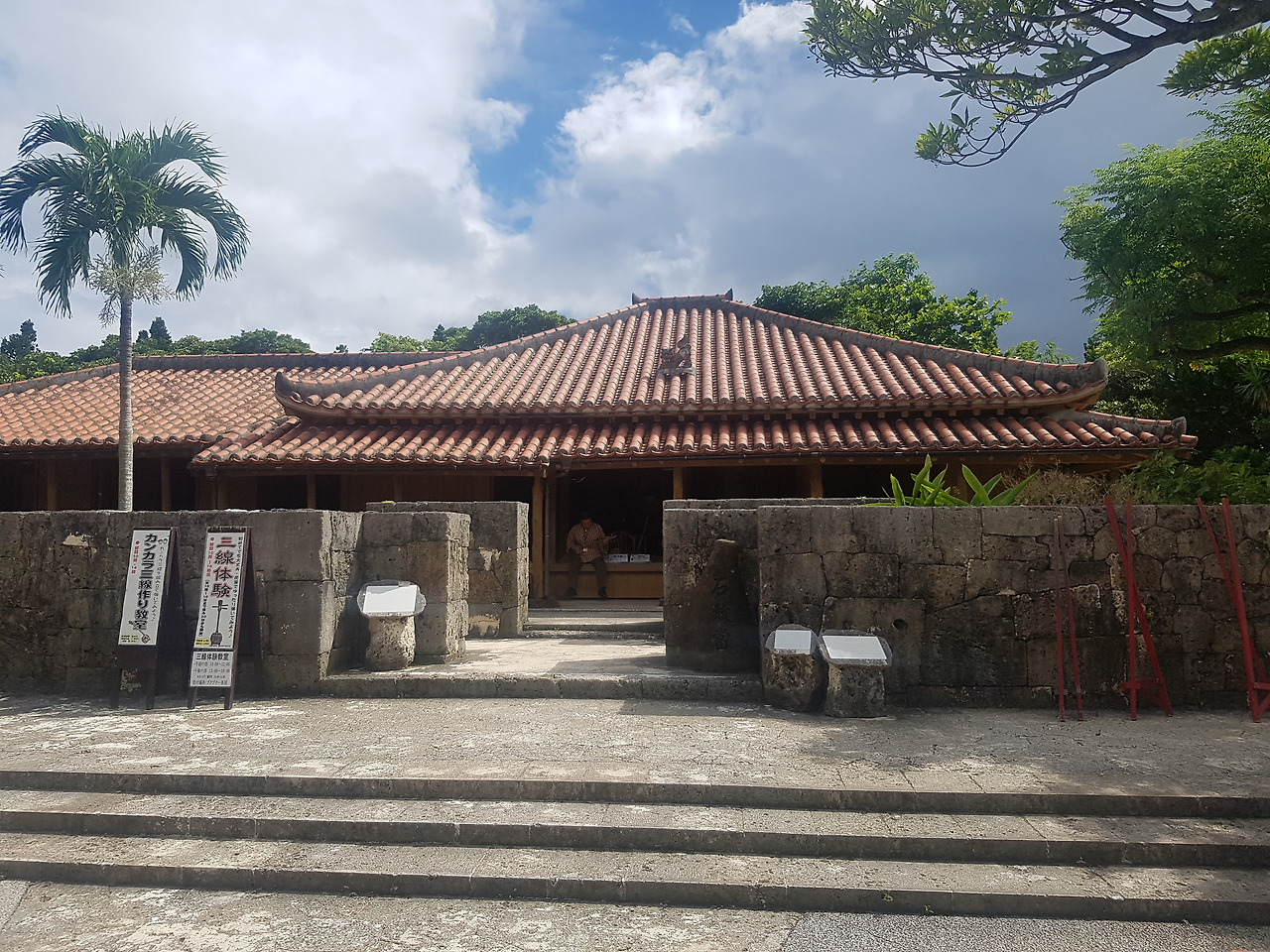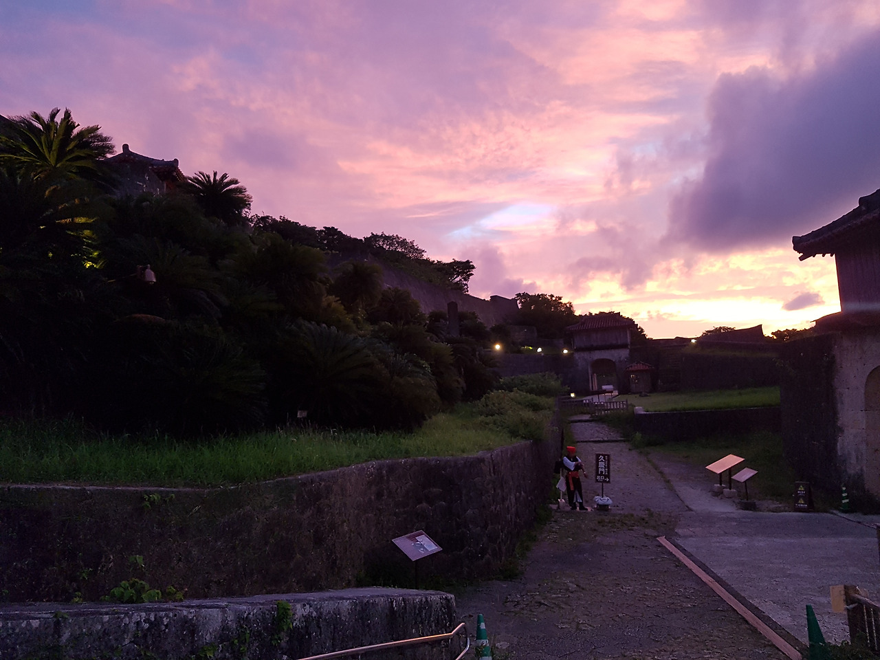 오키나와의 중심부인 나하 시 부근에 아주 흥미로운 곳이 하나 있다. 오키나와가 일본으로 편입되기 전, 다시 말해 오키나와가 독립왕국이었던 시절의 수도, 슈리성이 바로 그곳이다. 슈리성을 한자 이름 그대로 해석하면 우두머리 마을에 있는 성(首里城)이라는 뜻이다. 그 이름 자체가 이곳이 오키나와의 중심지였다는 것을 직설적으로 나타내는 느낌이다. 슈리성 자체는 하나의 거대한 공원으로 구성되어있다. 그러다 보니 비교적 늦은 시간에 방문했음에도 이곳을 찾는 오키나와 사람들이 매우 많았다. 유료 구간을 제외하고는 무료로 입장할 수 있다 보니 많은 사람들이 보다 즐겨 찾는 모양이다. 슈리성으로 안으로 계속 들어가다 보면 드디어 슈리성의 중심부가 등장한다. 바로 류큐왕국의 정치가 이루어졌던 정전, 북전, 남전 등이다. 경복궁으로 치면 근정전쯤 될까. 이 슈리성의 전각들을 보면 류큐왕국이 일본보다는 중국의 영향을 많이 받았다는 것을 피부로 느낄 수 있다. 붉은빛의 기와로 구성된 전각의 지붕들은 중국 남부의 건축양식과 많이 닮아있다. 전각 안으로 들어가면 류큐왕국 당시의 모습을 엿볼 수 있는데 당시 류큐왕국의 왕이 입었던 예복 등을 보아도 일본의 전통 복식보다는 중국의 전통복식을 많이 닮아 있다는 것을 느낄 수 있다. 그도 그럴 것이 류큐 왕국 자체가 중국과의 조공무역을 통하여 번성한 나라였고 중국 황제의 책봉을 통하여 류큐 왕국의 오키나와 지배에 대한 대내외적 정당성을 획득하는 나라였기 때문이다. 이러한 측면 때문에 일본 규슈지방의 번주였던 시마즈 가문이 오키나와를 지배했을 때에도 류큐왕국이 가진 조공 무역권 때문에 류큐왕국을 자신의 영토에 직접적으로 편입시키지 못하고 간접 지배할 수밖에 없었다. 일본이 오키나와를 점령한 사실을 중국이 알게 된다면 류큐왕국이 가진 조공 무역권은 소멸할 것이기 때문이었다. 임진왜란 이후 중국과의 조공무역이 끊긴 일본의 입장에서는 류큐왕국이 가진 조공 무역권이 매우 간절했다. 이처럼 조공무역은 류큐왕국의 생명줄 같은 것이었다. 하지만 그렇다고 해서 조공무역이 류큐왕국이 중국에게 의존하는, 일방적인 형태로 진행되었던 것은 아니다. 중국에게도 류큐왕국과의 조공무역이 매우 긴요했던 모양이다. 동남아시아와 동북아시아 사이에 위치한 위치 탓에 류큐왕국에는 동남아와 동북아의 물산들이 손쉽게 몰려들었고 중국에게 류큐왕국은 이러한 물산들을 안정적으로 공급해줄 수 있는 파트너와 같은 존재였던 것이다. 이 시기가 바로 류큐왕국에게는 황금기였던 셈이다. 현재 슈리성에 남아있는 중국의 흔적들은 어쩌면 류큐왕국의 화려한 시절이 남긴 영광 인지도 모른다.