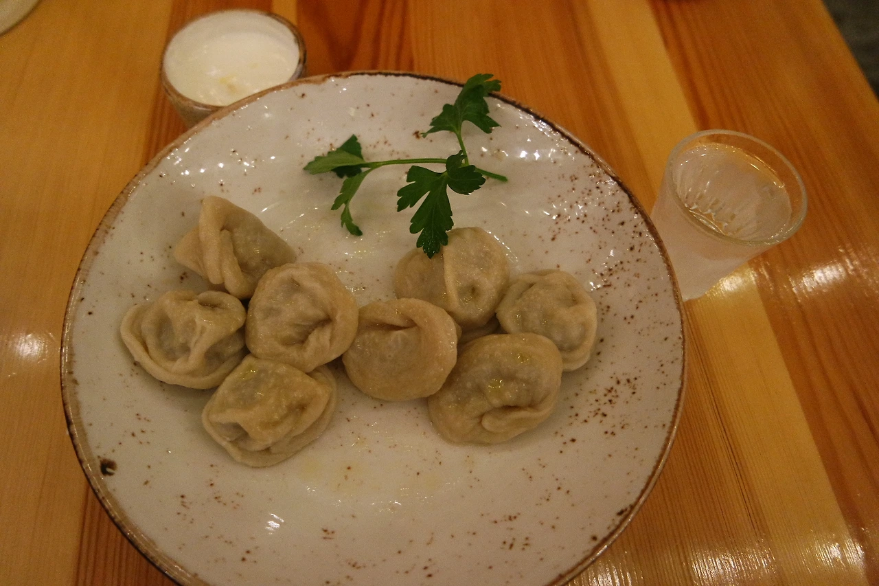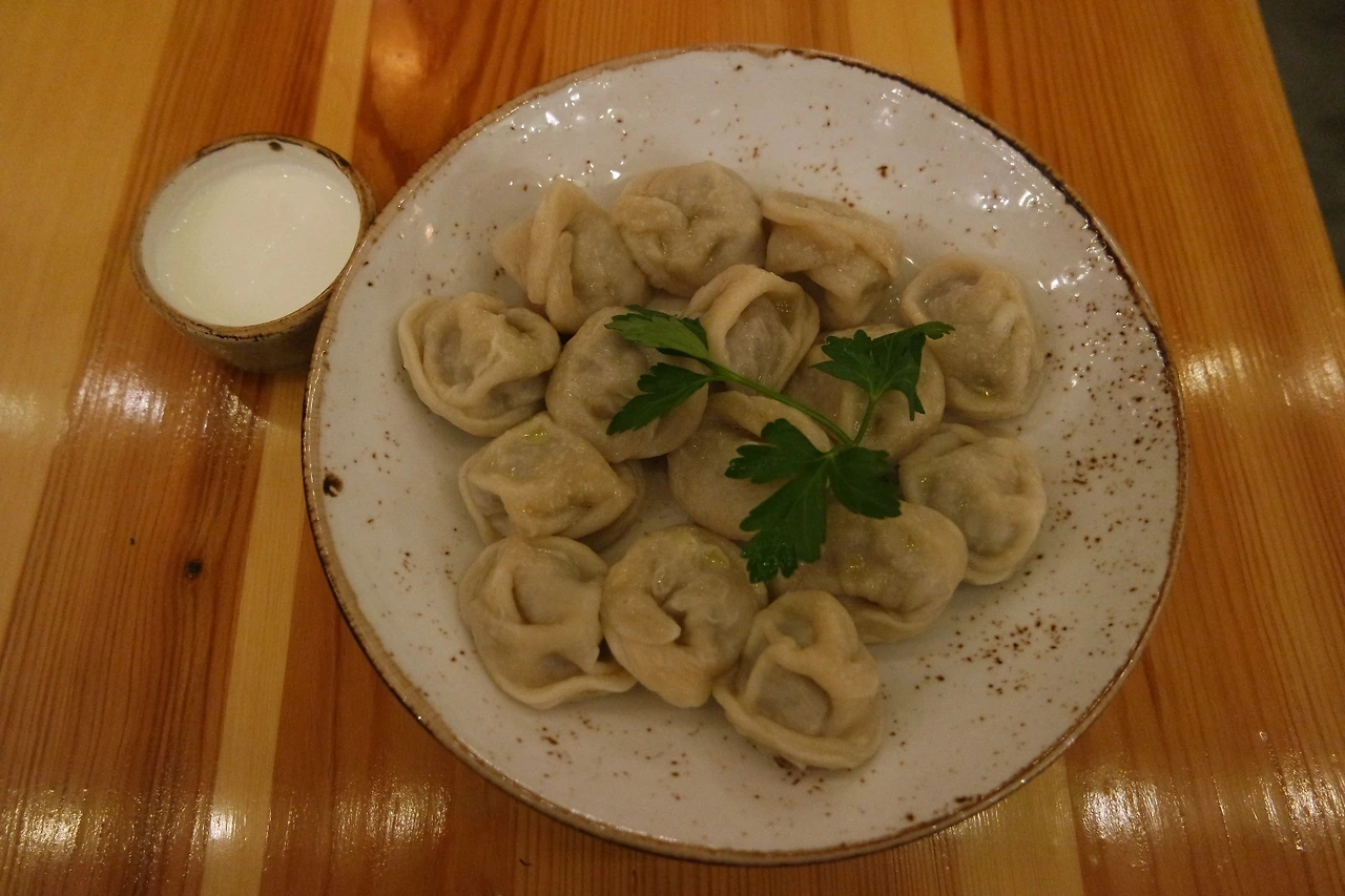 처음 만나게 된 만두는 펠메니였다. 할머니 스타일의 전통 만두라는데 간장 대신 러시아의 사워크림인 스메타나를 찍어먹는다. 펠메니는 시베리아 지역에서 주로 먹는 만두로 안에 소고기나 양고기를 간 것이 들어간다. 돼지고기를 속재료로 쓰는 우리나라나 중국과 대조적이다. 때문에 만두를 베어 물었을 때 속재료의 맛이 조금 더 강하게 느껴진다. 아무래도 돼지고기 보다는 소나 양의 육향이 더 강하니까. 시베리아 지역에서 만두를 먹게 된 것은 인접 국가들의 조리법에 영향을 받은 탓도 있겠지만 시베리아의 혹독한 기후 속에서 야외활동을 주로 하는 사냥꾼들의 비상식량으로 먹기 요긴했기 때문이라는 것이 가장 큰 이유일 것이다. 만두를 자세히 살펴보면 만두피는 탄수화물이고 만두소는 육류가 주로 들어가 단백질과 지방이 풍부하니 영양학적으로는 매우 훌륭하다. 게다가 한번 만들어 놓으면 추운 시베리아이니까 상할 일이 없어 보존도 용이하고 몸에 지니고 다니기도 편하다. 게다가 물을 끓여 삶거나 끓이기만 해도 따뜻한 식사를 할 수 있으니 더할 나위 없는 보존 식량이다.