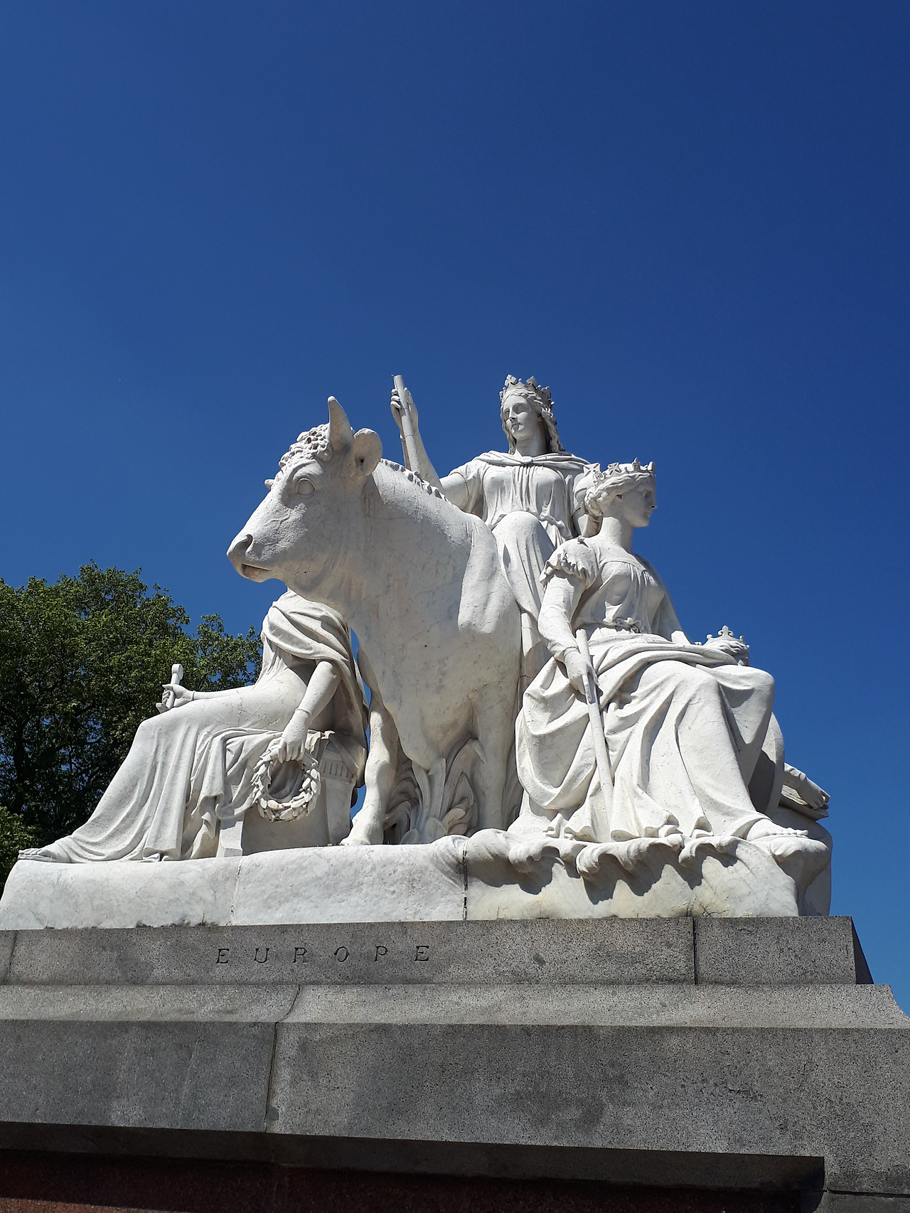 켄싱턴 파크 남쪽에 위치한 알버트 공 기념탑은 빅토리아 여왕 시대의 영광을 잘 보여주는 구조물이다. 기념탑 자체는 여왕의 부군인 알버트 공을 기리는 것이지만 자세히 뜯어보면 당시 영국의 위상을 잘 알 수 있다. 금빛으로 장식된, 높게 솟은 탑의 모습도 화려하지만 탑의 네 모서리를 장식한 조각들이 더 눈에 띄었다. 흰 대리석으로 장식된 조각들은 영국이 지배한 각 대륙을 상징한다. 재미있는 것은 각 조각상에는 그 대륙을 대표하는 동물들이 자리 잡고 있다는 것이다. 아메리카 대륙은 버펄로가 아프리카는 낙타가 아시아는 코끼리가 조각되어있다. 그렇다면 유럽은 어떤 동물이 장식되어있을까? 바로 흰 암소이다. 흰 암소가 유럽의 상징인 이유는 유럽의 기원이자 어원이 그리스 로마 신화에 등장하는 에우로페라는 여인에서 비롯되었기 때문이다. 제우스는 에우로페라는 여인을 사랑하였는데 이 여인이 임신을 하자 제우스의 부인인 헤라가 질투를 하게 된다. 그녀를 흰 암 소로 변하게 한 뒤 어느 곳에서도 정착하지 못하게 했는데 괴롭힘을 당하던 중에 그녀가 바다를 건너 다다른 곳이 유럽이었다는 이야기가 전해진다.