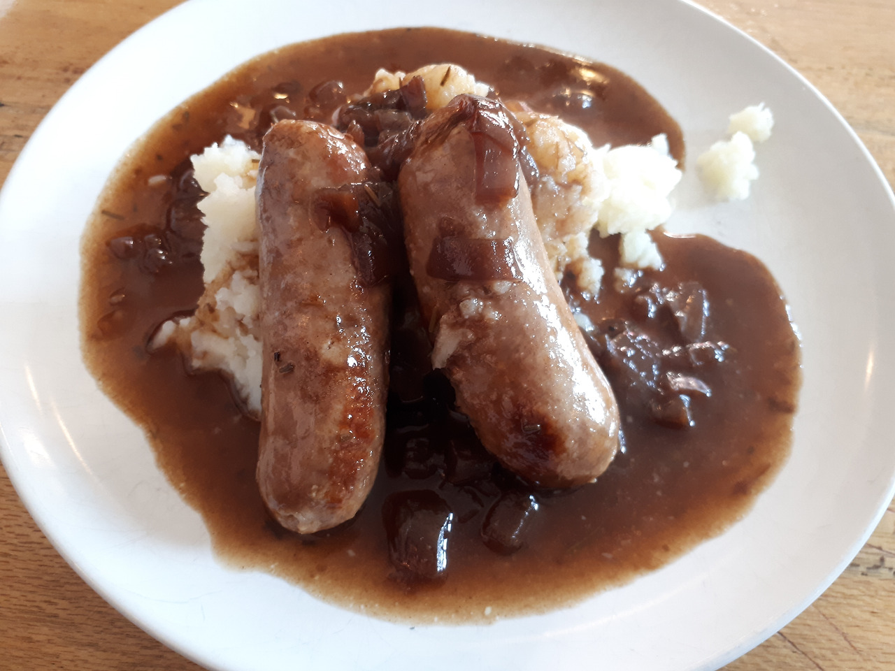 두 번째 요리는 뱅어스 앤 매쉬다. 뱅어스란 영국 소시지를 이르는 말이고 매쉬란 매쉬드 포테이토라는 뜻이다. 피시 앤 칩스는 튀긴 감자라면 뱅어스 앤 매쉬는 으깬 감자인 셈이다. 소시지의 짭짤한 맛과 매쉬드 포테이토의 심심하지만 은은한 감칠맛이 식욕을 돋게 했다.
