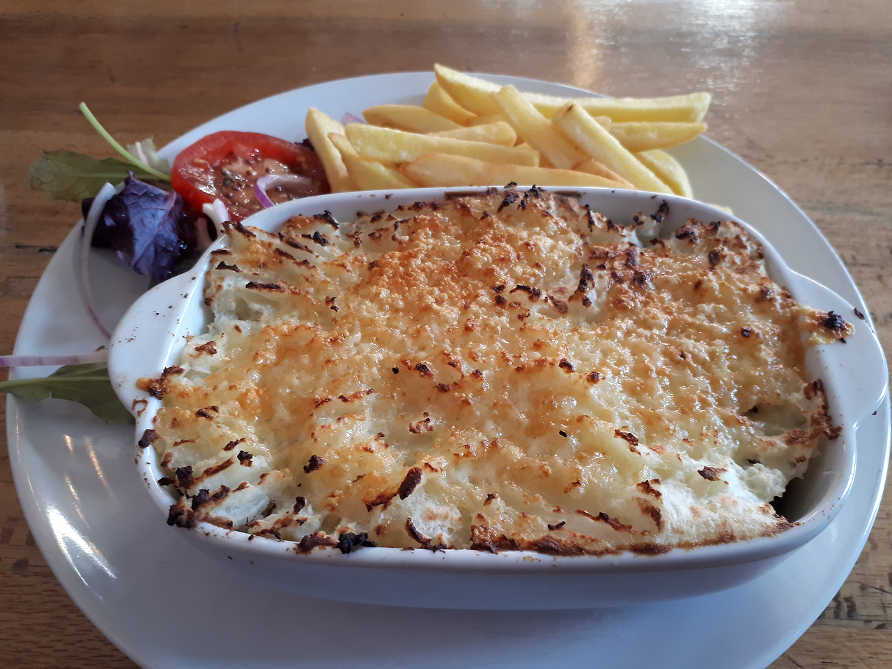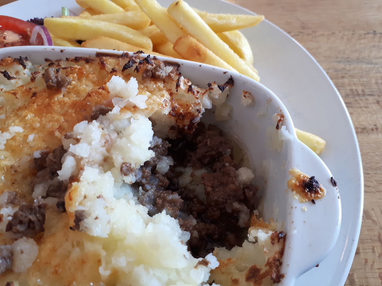 마지막 감자요리는 코티지 파이이다. 코티지란 농촌의 오두막이란 뜻인데 소박한 시골 요리라고 생각하면 되겠다. 다진 양고기에 그레이비소스를 뿌리고 다진 감자를 위에 얹어 오븐에 구워 낸 요리이다. 위에 얹어진 감자를 맛있게 먹다 보면 안에 숨겨진 양고기를 맛보게 되는데 감자와 고기를 같이 먹어도 맛있고 각각 먹어도 맛있다. 그냥 퍼먹게 되는 맛이랄까. 너무 맛있어서 펍에서 요리를 주문한 후 음식이 나오기까지는 30분 정도가 걸렸으나 음식을 먹는 데에는 10분 정도 걸렸다. 음식을 시키기 전에 버스 시간을 놓칠까 두려웠는데 막상 음식을 다 먹고 나니 기우였다는 걸 깨달았다. 그만큼 맛있었던 요리다.