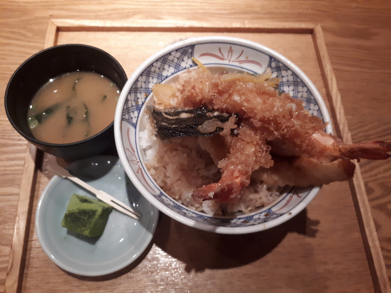 마지막으로 소개할 덮밥은 텐동이다. 텐동이란 일본식 튀김인 텐푸라를 얹은 돈부리란 뜻이다. 일본에서는 튀김이 꽤나 고급음식이었다. 애초에 기름이 매우 귀했고 더군다나 지금도 비싼 참기름으로 튀김을 만들었기 때문이다. 집에서 튀김요리를 해본 사람을 알겠지만 튀김은 참 기름이 많이 필요한 요리다. 도쿠가와 이에야스는 이 텐푸라를 참 좋아했다고 알려져있는데 이 텐푸라를 즐겨먹다가 복통으로 세상을 떠났다고도 전해진다. 텐동의 주인공은 아무래도 왕 새우를 튀긴 에비텐이다. 바삭한 튀김을 먹고 느끼해진 속은 밥과 미소된장국으로 마무리한다. 황홀한 만찬이다.