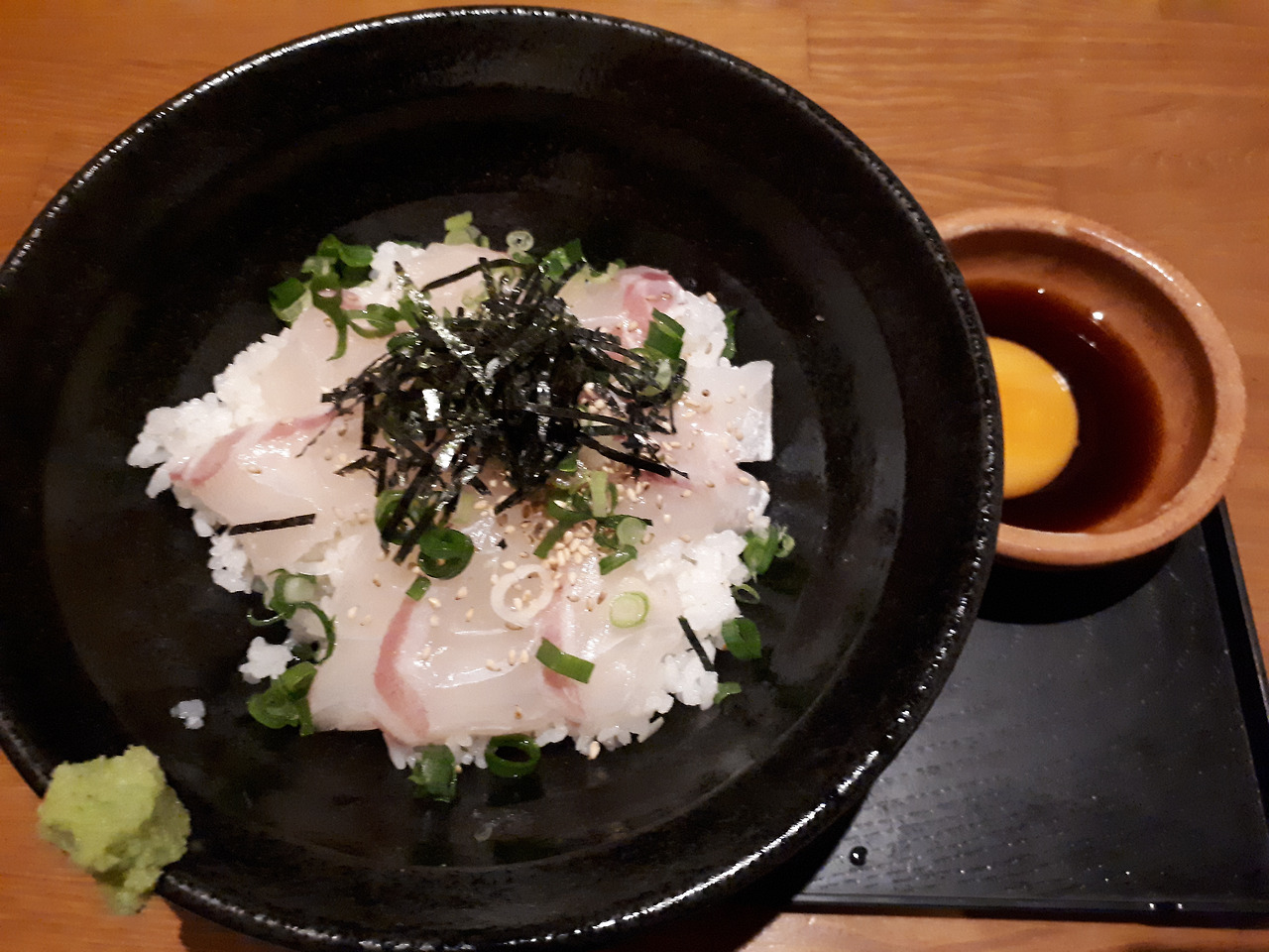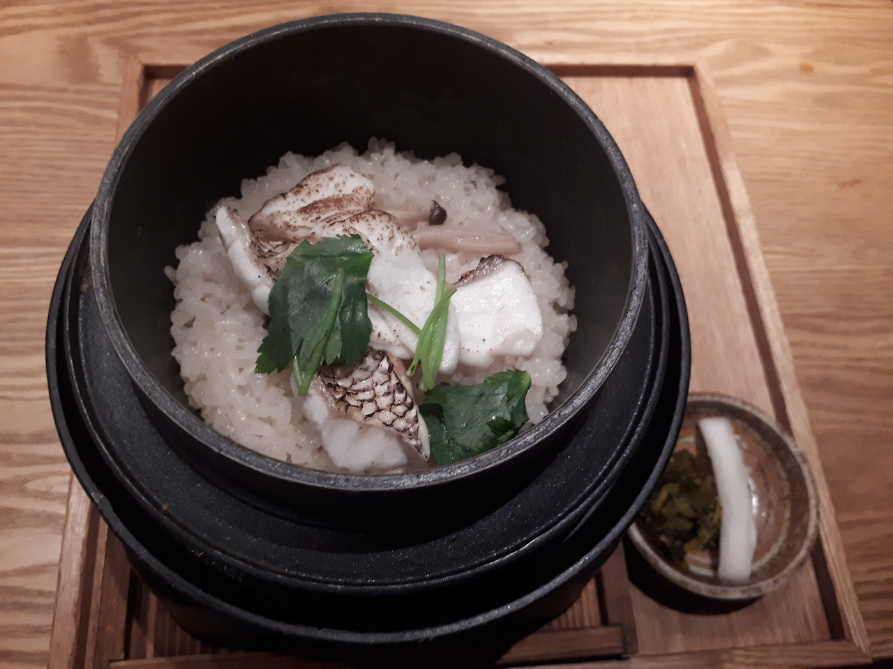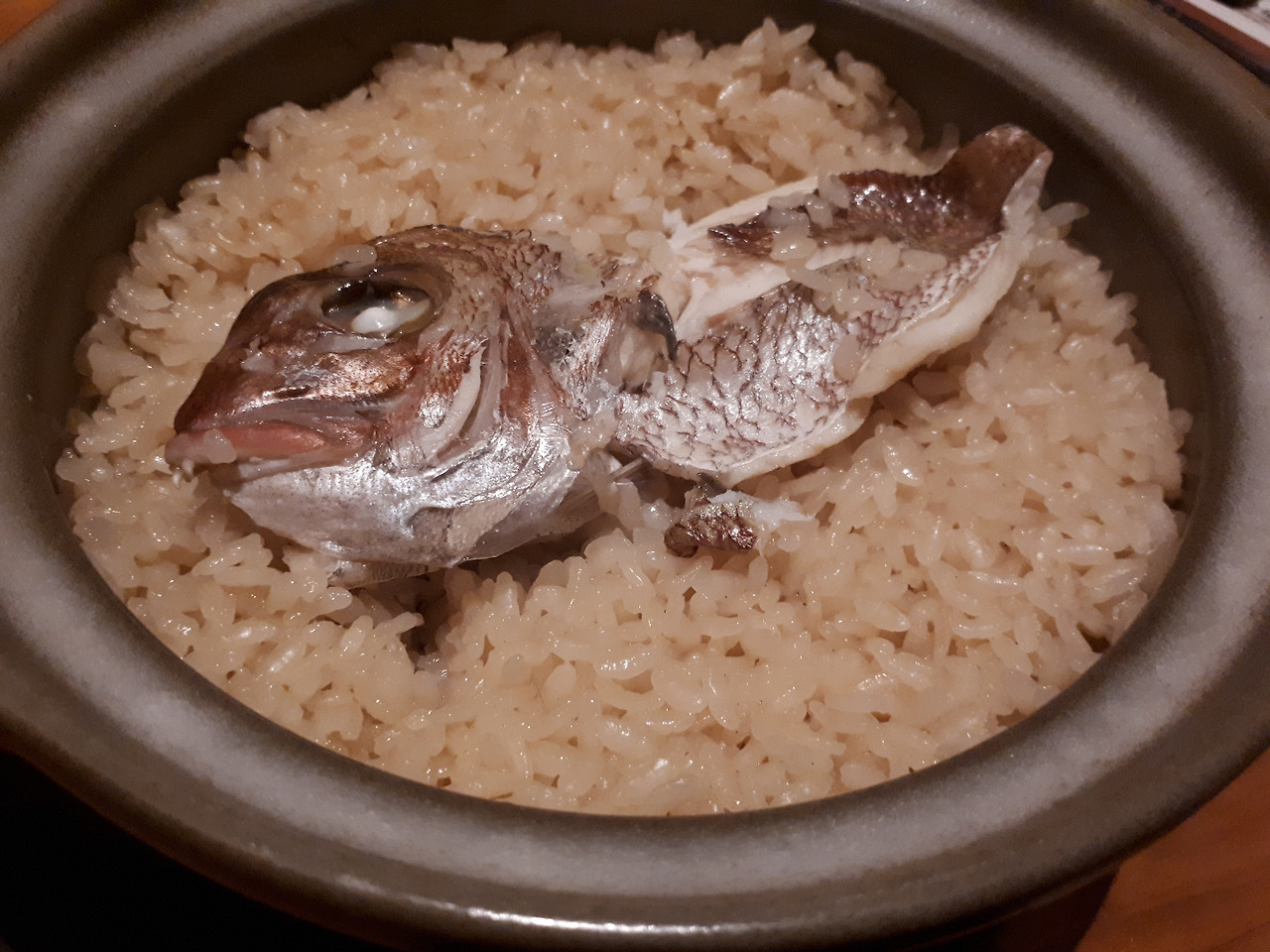 마쓰야마가 속한 에히메현에는 참 맛있는 것들이 많 았다. 가장 대표적인 것이 도미밥인 타이메시다. 이지역은 도미가 유명한데 밥과 함께 먹는 방식으로 도미를 먹어왔단다. 타이메시는 크게 두가지 종류가 있다. 도미 회를 밥 위에 올린 후 달걀 노른자와 타래소스 그리고 와사비를 얹어 먹는 형태이다. 도미 회덮밥이라고 할 수 있다. 이러한 형태의 타이메시는 에히메현의 우와지마지역에서 먹는 식이란다. 다른 하나는 도미 한마리를 밥과 통채로 솥에 넣고 쪄내는 방식으로 마지막에 도미살을 으깨 밥과 함께 먹는다. 주로 마쓰야마 지역에서 먹는 방식이다. 도미 살의 고소함이 밥알 하나 하나를 감싸 밥의 풍미를 더해준다. 사시미 형태의 타이메시의 주인공이 싱싱한 도미 살이라면 솥밥 형태의 타이메시는 밥이 주인공인 셈이다. 하지만 어느 쪽이던 도미가 있어야만 타이메시의 맛이 완성된다는 것은 분명하다