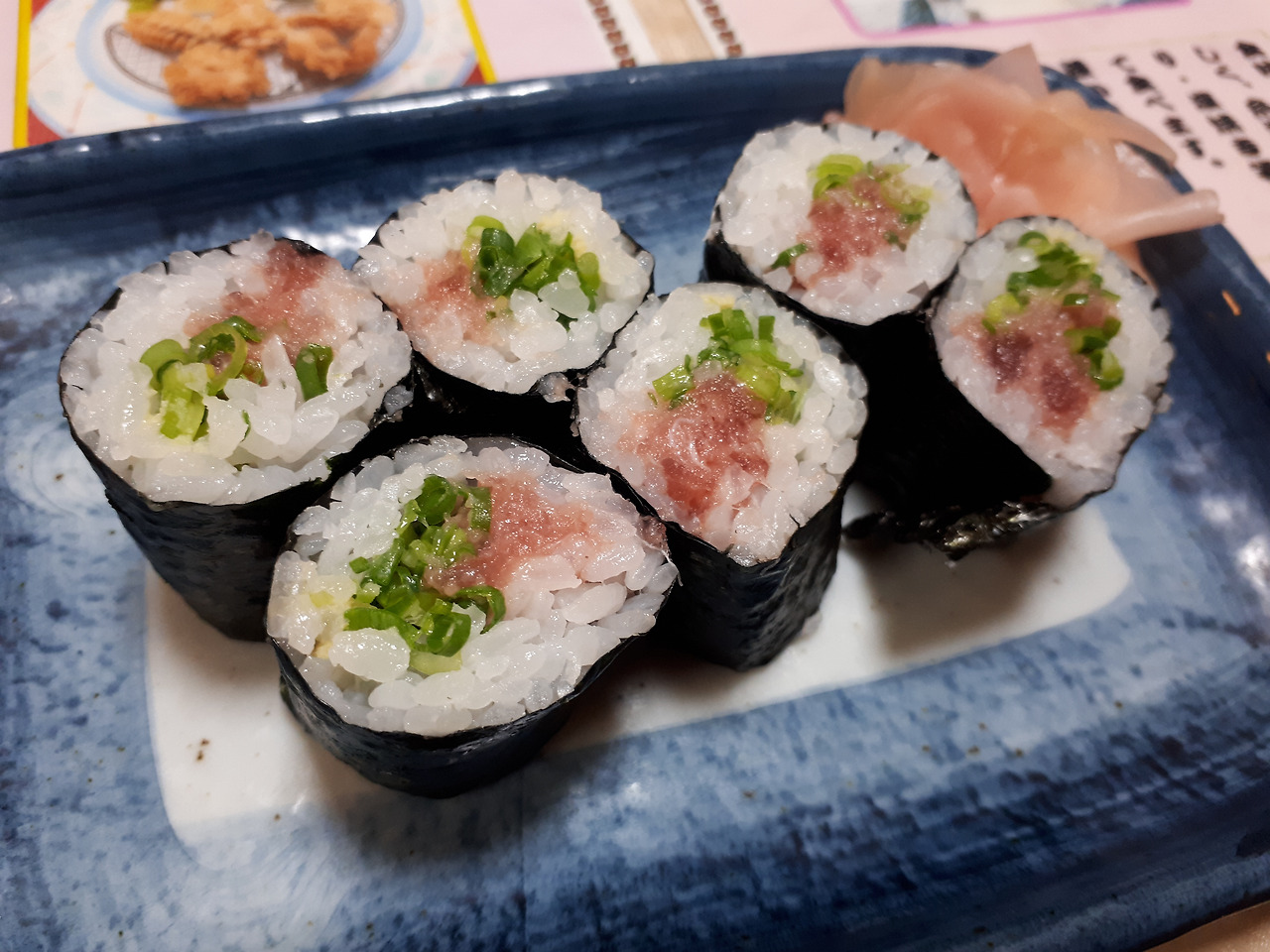 일본은 스시로 유명한 나라이다. 헌데 생선살인 네타가 쌀밥인 사리에 얹어져있는 모양인 일반적인 초밥과 달리 우리나라의 김밥과 비슷한 모양의 초밥이 있다. 마끼이다. 식재료가 밥 안에 품어져있고 마지막으로 김이 마끼 전체를 튼튼하게 감싸고 있다. 일반적인 초밥은 젓가락질을 하다가 모양이 뭉개져버리기 십상인데 마끼는 그에 비하 김으로 감싸져 있어 모양이 마지막까지 흩트러 지지 않아 젓가락질이 서툰 나의 입장에서는 참좋은 음식이다. 나는 마끼 중 네기도로마끼를 주문했다. 네기도로는 참치갈비살을 말한다. 익숙하고도 깔끔한 맛이라 이번 여행을 함께 한 부모님도 참 맛있게 드셨다.