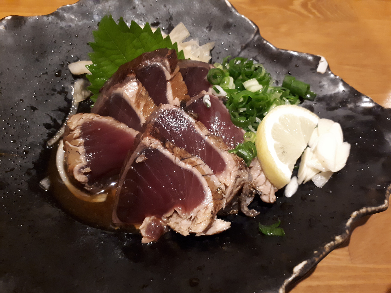 시고쿠 남쪽에는 고치현이 있는데 비록 일정상 가보지는 못했으나 운이 좋게도 내가 주로 여행했던 지역인 마쓰야마에서 고치현의 명물인 가쓰오 와라야끼를 맛볼 수 있었다. 가쓰오는 가다랑어를 뜻하고 와라야끼는 짚불에 굽는 방식을 말한다. 가다랑어 짚불구이라할 수 있다. 부산의 꼼장어 구이가 생각이 나는 조리 방식이다. 짚불에 가다랑어를 구우면 순간적인 화력이 강하기 때문에 겉이 바삭하게 익으면서 짚의 향이 배어 풍미를 더해주는 효과를 준다. 순간적으로 강하게 익히면 겉은 익고 속은 익지 않은 타다끼를 만들어낼 수 있다. 구이와 회를 동시에 맛볼 수 있는 별미이다. 짚불의 향이 아직도 나의 구미를 자극한다.