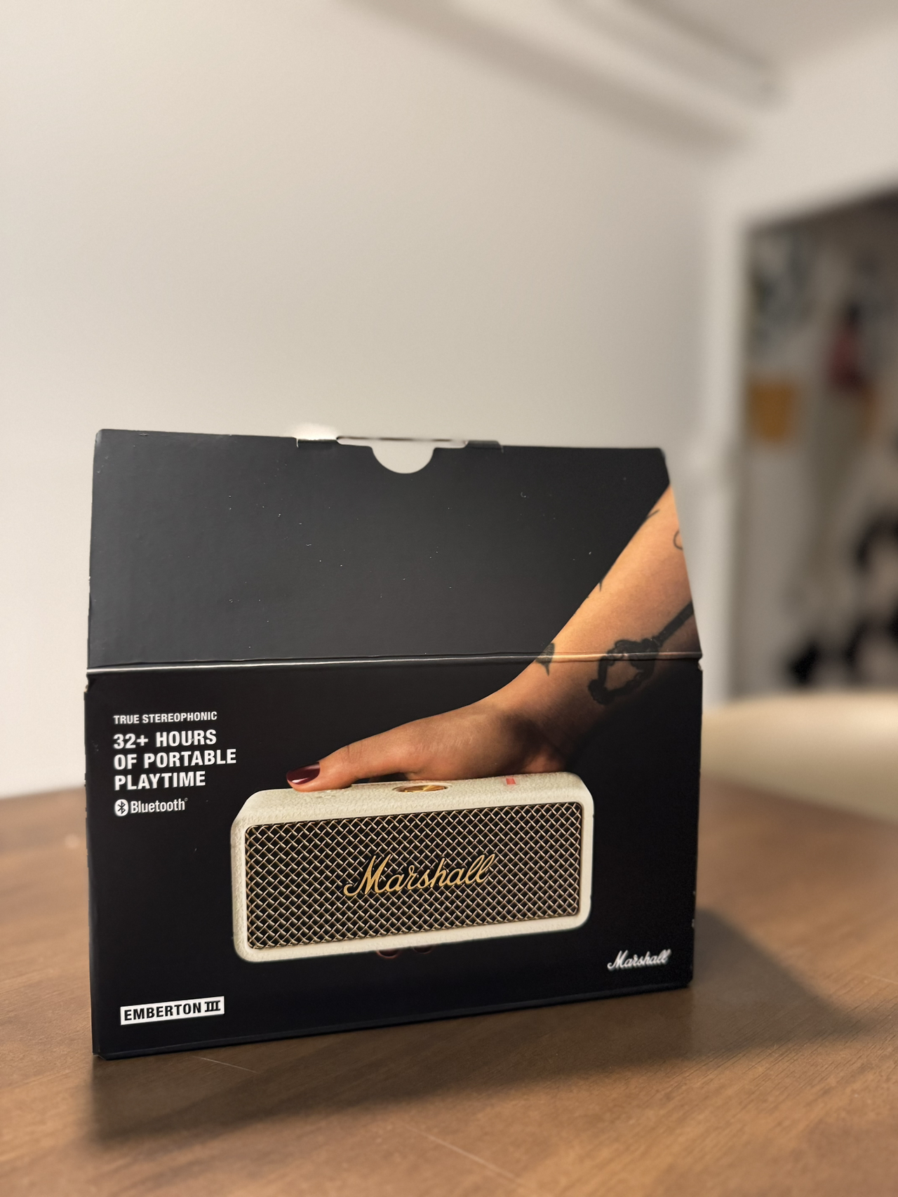 마샬 엠버튼(Emberton). 작은 몸체에서 앞뒤로 뿜어져 나오는 사운드는 6평 반, 아담한 공간을 채우기에 과분했다.
