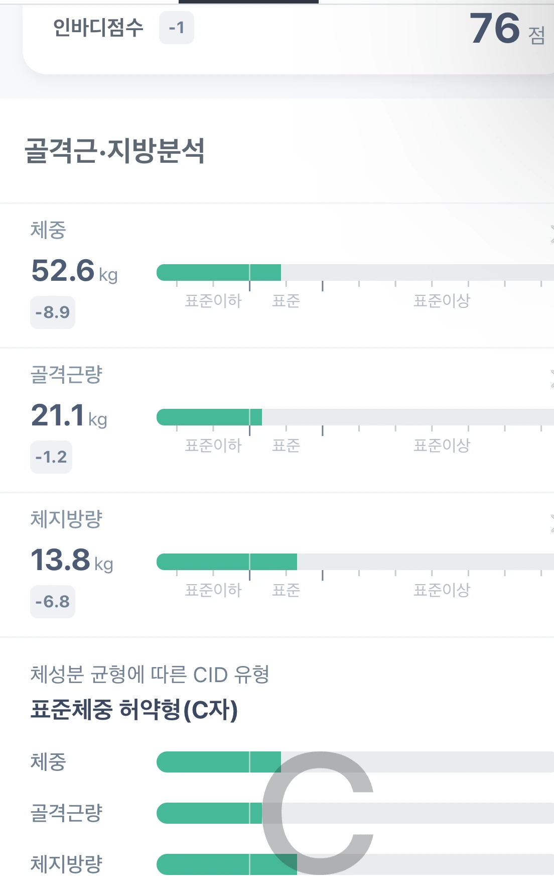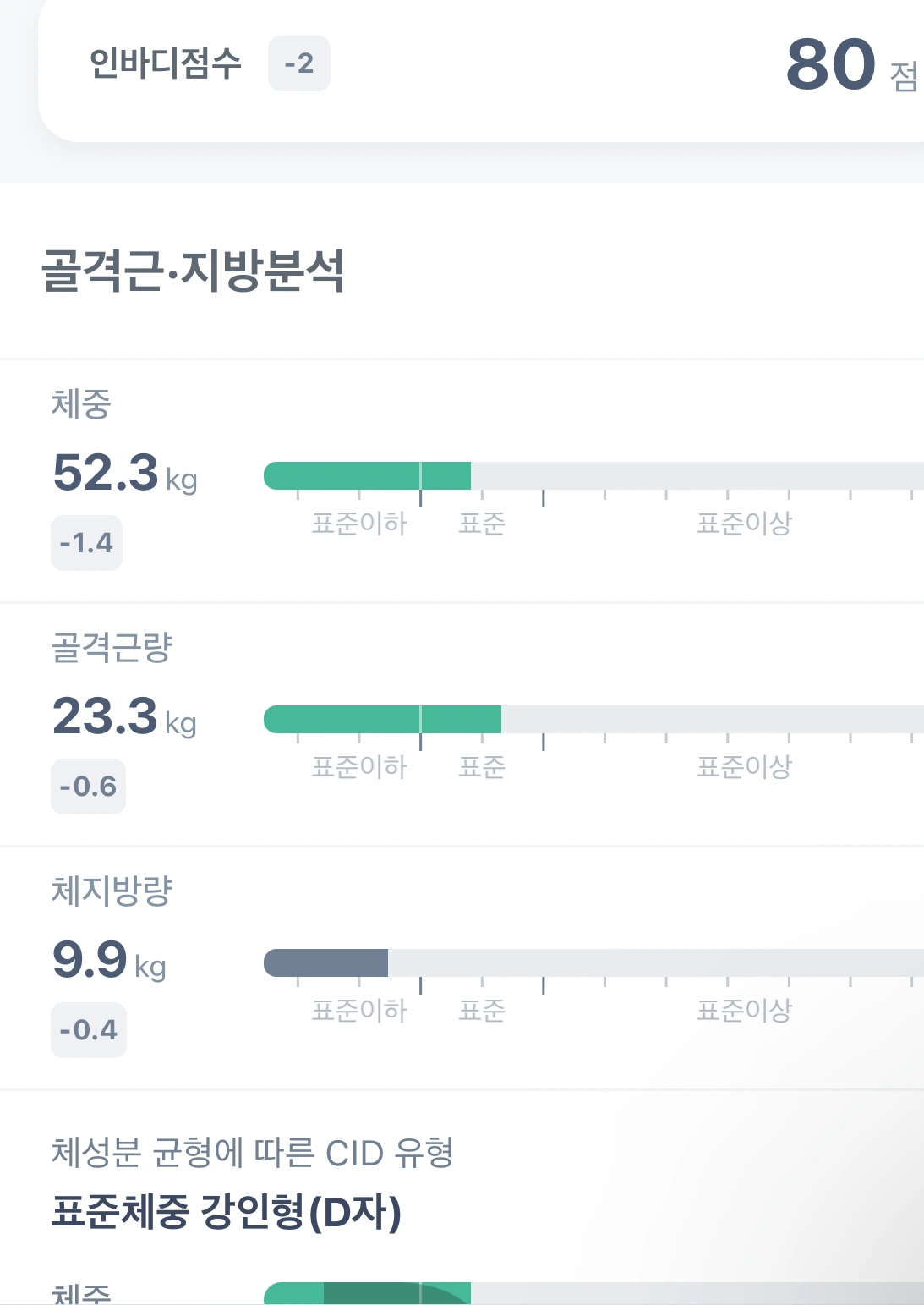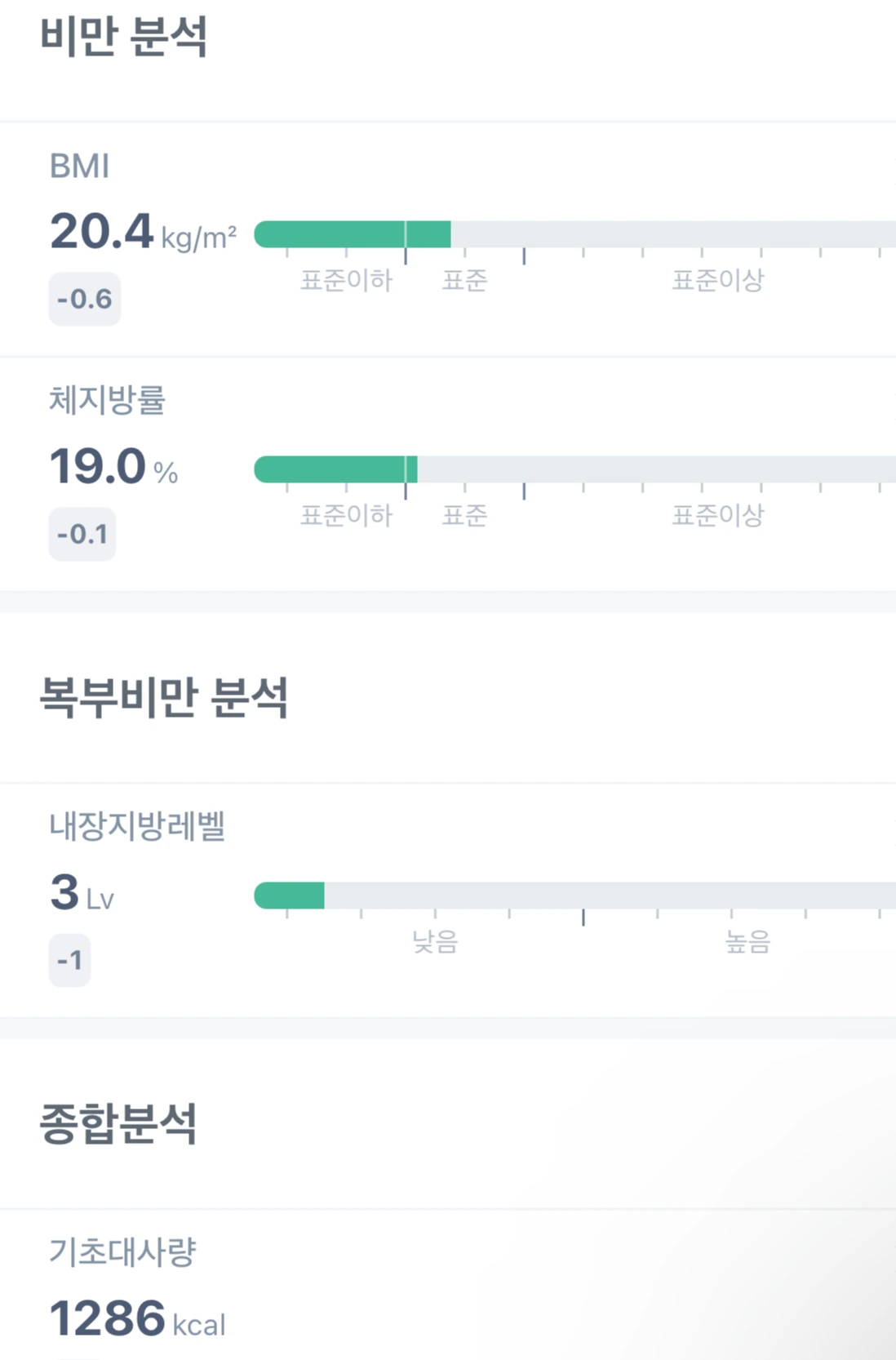 기립성 빈혈이 생기고, 살짝만 부딪혀도 멍이 든다. 몸이 가벼워진 만큼 기운도 떨어졌다. 자꾸 눕고 싶은 느낌이 불길해 결국 오늘 저녁에 인바디 체중계를 꺼냈다. 먼지가 수북이 쌓여 있고, 배터리도 나가 있었다. 교체 후 블루투스를 연결해 체중을 재봤더니, 이유를 알 것 같았다.