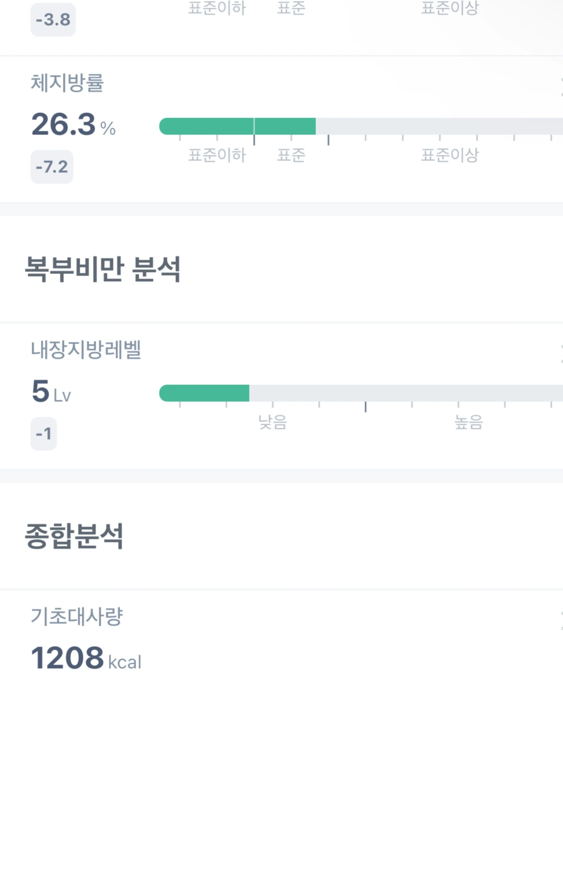 [허약]이라는 단어가 찍혀 있었다. 기초대사량은 1208. 곧 1100대로 떨어질 준비를 마친 수치였다. 저녁에 잰 가정용 인바디는 오차가 크지만, 그걸 감안해도 예상보다 심각했다.