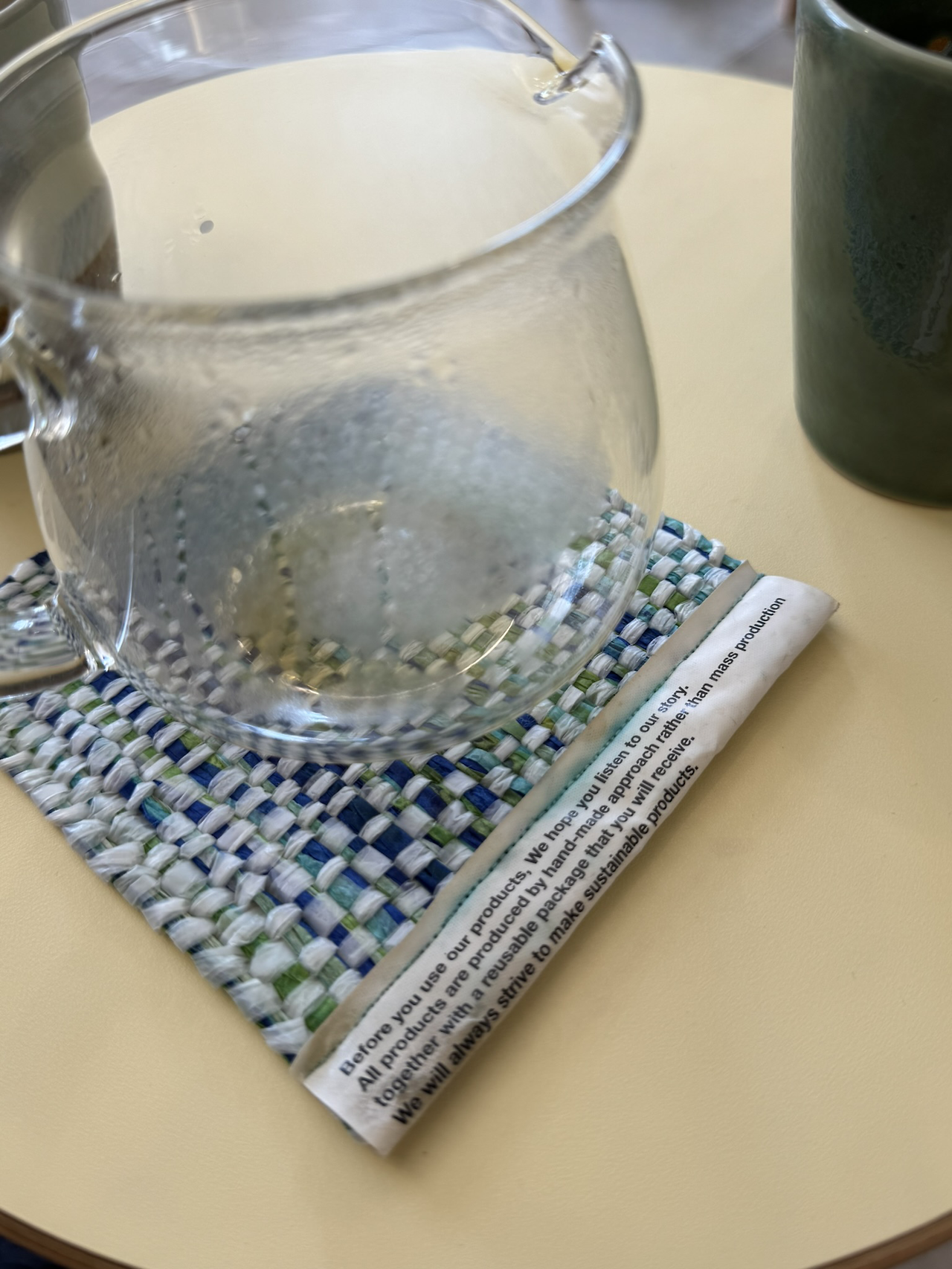 음료와 같이 나오는 코스터도 눈에 들어왔다. 직조된 결감이 인상적이었는데, 찾아보니 국내 브랜드 MEB의 제품이었다.