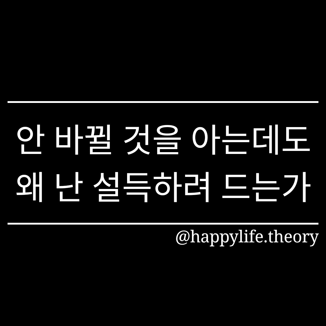 첫째, 제 이야기가 아무리 설득력이 있어도 듣는 사람이 고집도가 높다면, 절대 설득되지 않을 것입니다. 둘째, 제 이야기를 듣고 설득되었더라도, 제 말에 설득력이 있어서가 아니라 듣는 사람이 고집을 마침 꺾을 때였던 겁니다. 셋째, 제 이야기를 듣고 설득되었더라도, 불편함이 귀찮음을 이기지 못하면 금방 원래대로 돌아올 것입니다.