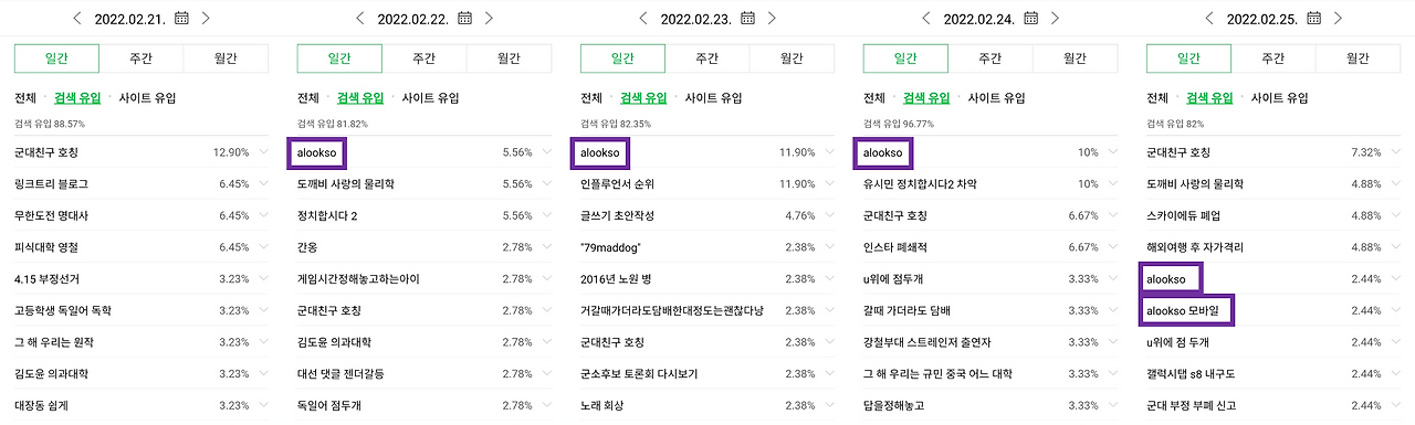 alookso 키워드가 유입검색어 1위를 3일이나 차지하는 기염을 토하다