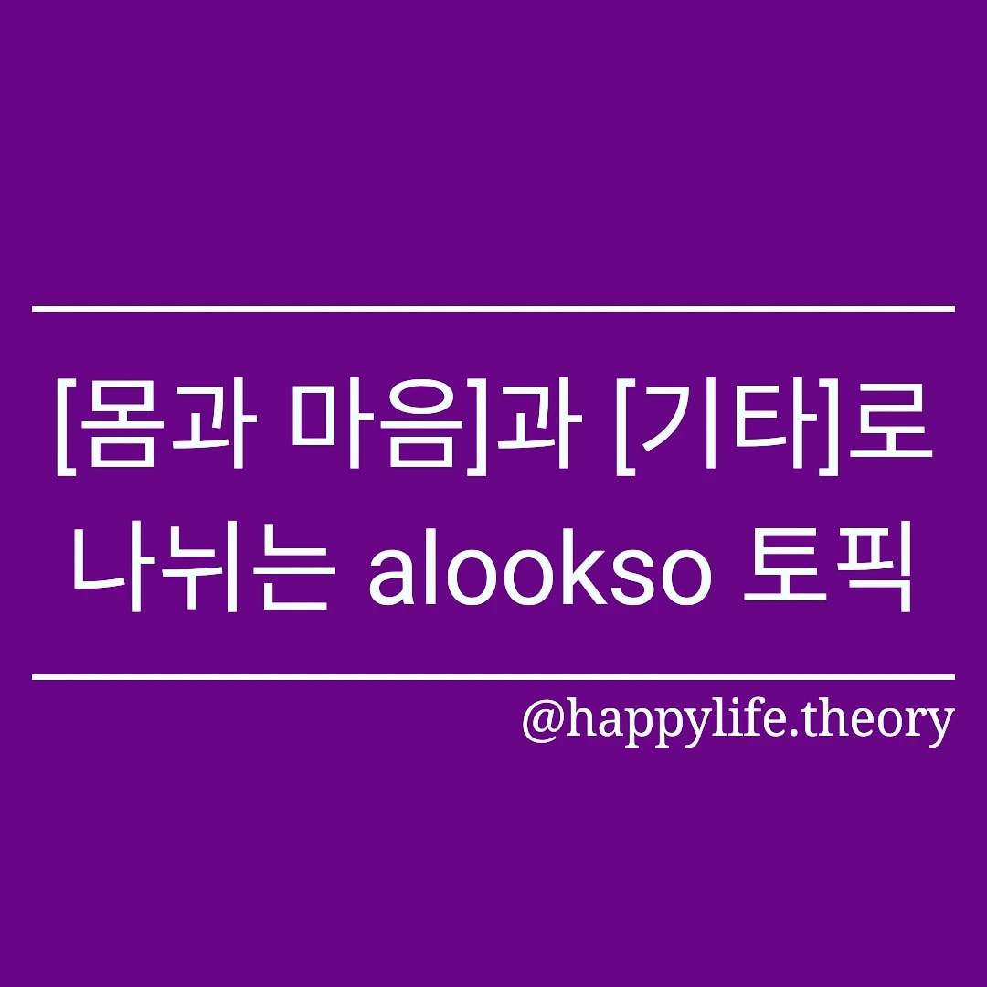 [몸과 마음] 토픽은 모두의 안식처, 점차 쏠림 현상이 가속화되고 있음 [보통 사람들의 경제] 토픽은 관심은 많은데, 쓰기가 쉽지 않음 [프로젝트 alookso 이야기] 토픽은 관심토픽으로는 안 넣지만, 글은 많이 씀 [미국과 중국] 토픽은 강대국을 다루지만, alookso 안에서만큼은 버려졌음
