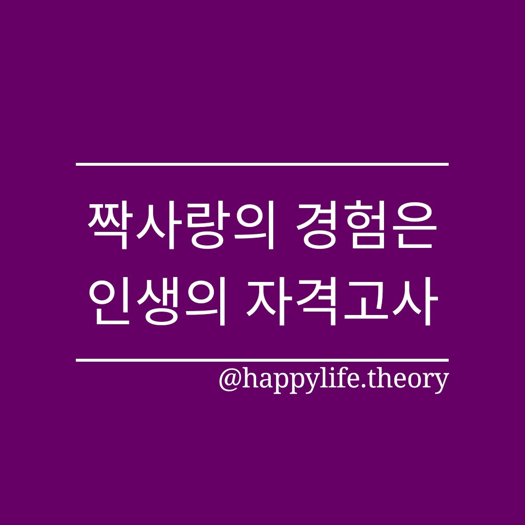 짝... 사랑하세요? 누구나 한 번쯤 누군가를 짝사랑해본 경험이 있을 겁니다. 물론 어떤 사람은 늘 구애만 받았기에 누굴 짝사랑해 본 적이 없다고 말할 수도 있겠습니다. 비록 제가 오래 살진 않았지만, 단언컨대 [짝사랑]의 경험은 [인생을 논할 자격고사]라고 생각합니다. 인생이란 평생을 고통으로 점철되어 살다가 어느 날 훅 찾아온 순간의 [행복감]이 그 고통을 잊게 해주는 과정이 무한 반복된다고 생각합니다.