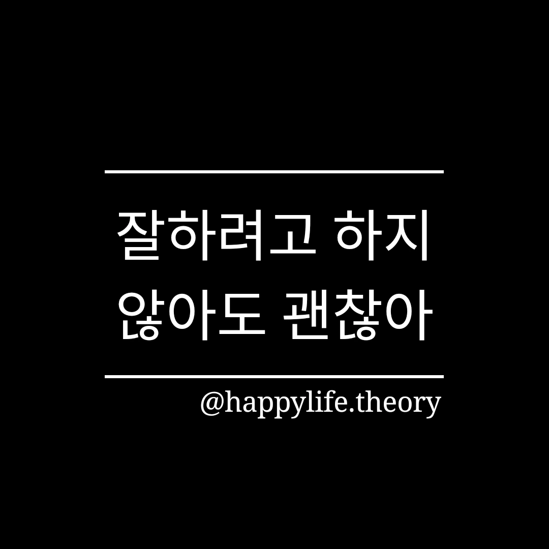 혹시 스스로 지난 인생을 돌아봤을 때, 잘하지 않아도 괜찮다는 말, 잘하려고 하지 않아도 괜찮다는 말을 들어본 적이 있으십니까? 다행히도 저는 대학생 때 분명히 저 얘기를 몇 번 들은 적이 있었습니다. 그때 당시의 제 반응은, 그럼 열심히 하지도 말고, 잘하지도 말라는 얘기냐고 도리어 따져 들면서 이런 것도 못하면 전 도대체 뭐가 되는데요?라는 식으로 반항했던 것 같습니다. 지금 생각하면 참 부끄러운 과거인데요. 탁월함을 추구하던 제가 느끼기로 저런 말 한마디가 스스로를 약하게 만드는 거짓 위로라고 생각했던 듯합니다. 당시 뭔가를 잘한다는 건 곧 특징이고, 특징은 정체성으로 자리 잡게 된다고 생각했는데요. 예를 들어 아무도 농구를 못하는데 혼자 농구를 잘하면, 농구 잘하는 아이로 인정받게 되지만, 저보다 농구를 더 잘하는 아이가 들어오게 되면, 단순히 농구를 못하는 것에서 끝나지 않습니다. 저는 농구를 잘하는 아이라는 정체성을 빼앗겨 버리게 되는 것이죠. 그래서 정체성을 잃지 않기 위해 부단히 노력하게 되는데, 그 과정 속에서 하나도 행복하지 않죠. 인생은 원래 고통의 연속이야 라고 부르짖으면서, 이런 고통은 성장통이라 착각하면서 미래의 행복을 위해 현재의 행복을 저당 잡히는 삶을 살게 되었다고 생각합니다.