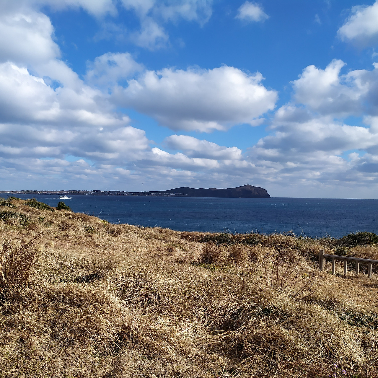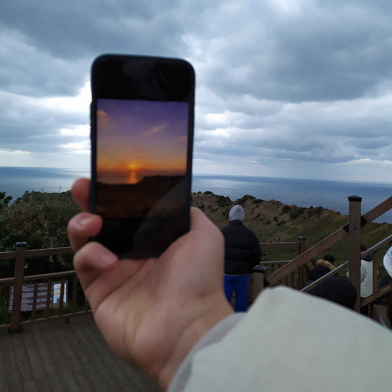 과연 아침 기상에 성공할 수 있을까 싶었는데, 평소에 자던 장소가 아니라서 그런지 아침에 저절로 눈이 떠진 탓에 해돋이를 보러 갈 수 있었습니다. 해발고도가 180m 정도밖에 되지 않아서 뒷산을 등산하는 수준이지만, 해가 뜨지 않은 새벽에 오르는 데다가 바람이 많이 불기 때문에 상당히 추웠습니다. 게다가 구름과 안개가 자욱한 탓에 아쉽게도 원활한 일출은 보지 못했네요. 일출을 보고 나서 돌아와 조식을 먹고 샤워를 한 뒤 퇴실하니, 여행 3일 차가 되었습니다. 여행 3일 차인 오늘 과연 우도에 방문할 수 있을까 싶었는데, 다행히 어제와 달리 바람이 상대적으로 잦아든 관계로 배를 탈 수 있을 것 같았습니다.