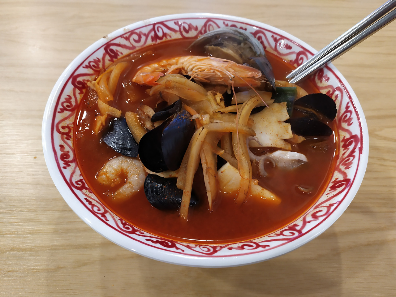 잠깐 해변을 둘러보니, 맑은 바닷물이 꽤 인상적이었습니다. 엎어진 김에 쉬어간다고, 버스에서 내린 김에 점심식사를 해결하기로 했습니다. 근처를 돌아보니, 해물짬뽕을 판매하는 곳이 있어서 들어가서 간단히 식사하였습니다.