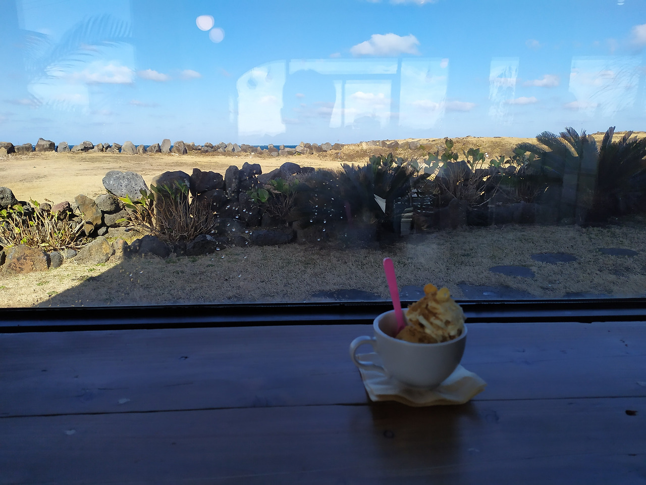 비양도에 쭉 걸어가서 다양한 자연환경을 감상하려는데, 갑자기 강풍이 불어와 너무 추웠습니다. 잠시 추위를 피하고자 한 카페에 들어갔는데, 알고 보니 그 카페가 비양도에 있는 유일한 카페라고 하더군요. 해당 카페에서 2005년에 영화 '깃'을 촬영했다고 합니다. 제가 해당 영화를 본 적이 없는 것은 둘째 치고, 이런 영화가 있었는지도 몰랐던 터라 어쩌면 이 세상에 내가 모르는 일들이 참 많이 있다는 걸 다시금 상기시켜주었습니다.