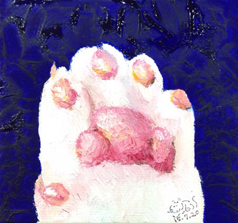 삐뚤게 쓴 베레모. 물감이 덕지덕지 붙은 앞치마, 알록달록한 물감이 올려져 있는 팔레트. 빛이 잘 드는 자리. 이젤엔 커다란 캔버스가 올려져 있다. 화가의 손은 붓에 물감을 찍어 커다란 캔버스에 한 덩어리씩 올리자 조금씩 완성된 형태가 캔버스에 올라간다.
