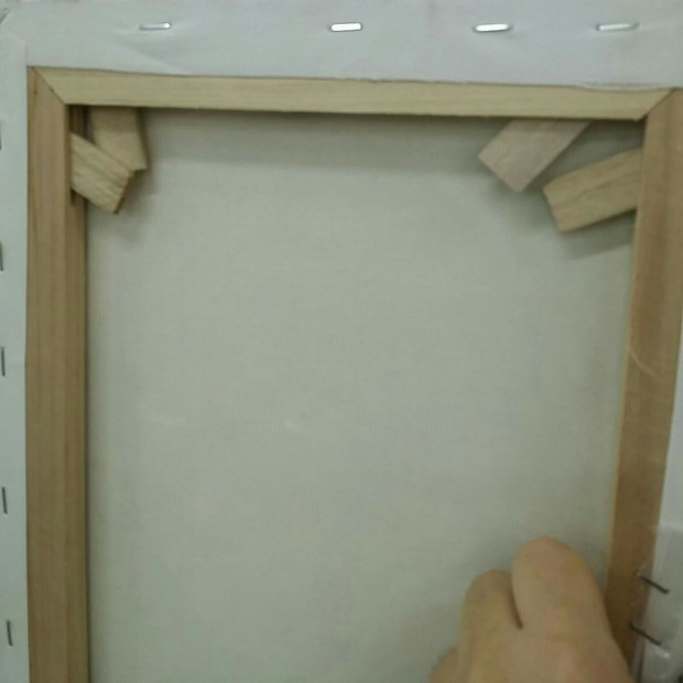 정화꾸 캔버스를 사면 8개의 나무 조각이 들어있다. 이 조각을 틀 모서리의 홈에 끼워 넣은 후 캔버스 천이 습기를 먹어 늘어났을 때 약하게 두드려 넣으면 캔버스 틀이 벌어져 천을 팽팽하게 당긴다.