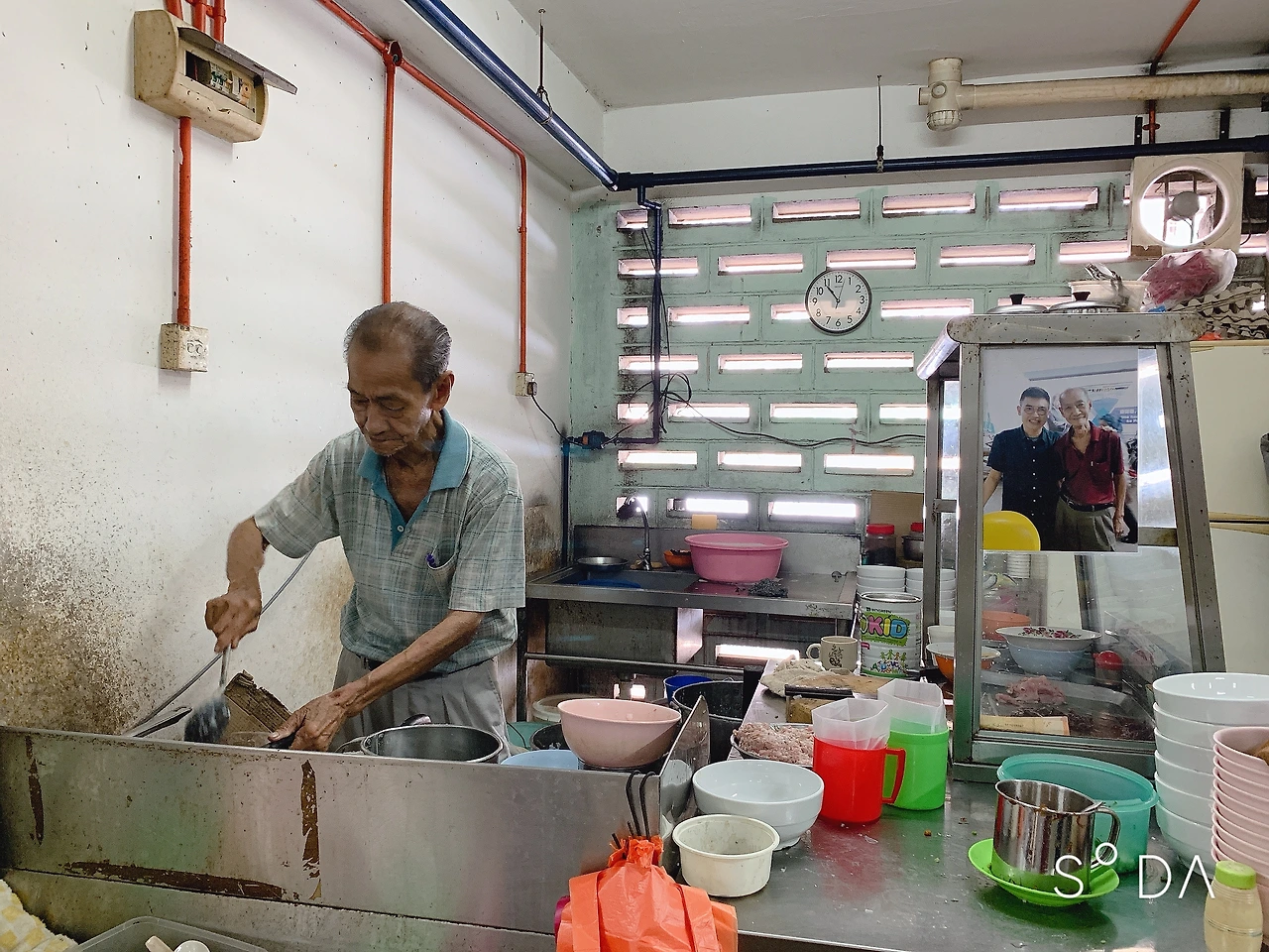 초우킷마켓에 가면 꼭 들르게 되는 할아버지 죽집이 있다. 넷플릭스의 로컬 다큐멘터리 “제이슨, 시장에 가다(Jason’s market trails)_ Chow kit market”편을 보고 꼭 가봐야겠다 싶어 찾아나섰다가 구글맵과 함께 시장을 몇 바퀴 돌고 나서 겨우 이층 구석에 있는 이 죽집을 발견했다. 1956년에 시작해서 아직까지 시장상인들과 시장을 찾는 사람들에게 아침을 팔고 계신 주인 할아버지는 80세가 넘으셨다. 오전 7시부터 10시까지 영업을 하는 덕에 서두르지 않으면 재료가 없거나 문을 닫아 맛을 보지 못한 적도 있었다. 이 죽집의 메뉴는 하이난 식 돼지고기죽과 생선죽 두 개밖에 없다. 물게 끓인 흰 쌀죽에 야채와 생선을 으깨어 만든 피쉬볼을 넣고 끓여내서 송송 썬 파와 잘게 썬 생강 고명, 마늘 후레이크를 얹고 특제 간장 양념이 무심한 듯 휘릭릭 뿌려 나온다. 후후 불어가며 한 그릇 먹고 있자면 시장 고양이들이 발 밑에 와서 느긋한 잠을 청한다.