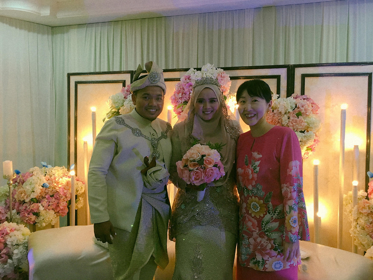 말레이 계 결혼식은 아랍 쪽 문화의 영향을 많이 받아서 인지 진짜 결혼식은 직계가족만 모여서 진행한다. 이후 친구들을 피로연 파티에 초대하는데 하루 종일 피로연을 하는 경우가 많고 날씨 탓에 저녁시간 파티가 많다. 답례품으로 ‘Bunga Telur’라는 종이꽃에 달걀을 매달아 주기도 하고, 쿠키나 국수를 튀긴 과자를 선물로 준다. 처음 말레이시아에 왔을 때 나에게 말레이어 과외를 해줬던 Norsham교감님의 딸 Iyana는 지난해 집에서 결혼 피로연을 열었었다. 천막을 치고 집 앞마당에서 열렸던 야나의 결혼식은 우리네 동네잔치와 비슷했다.