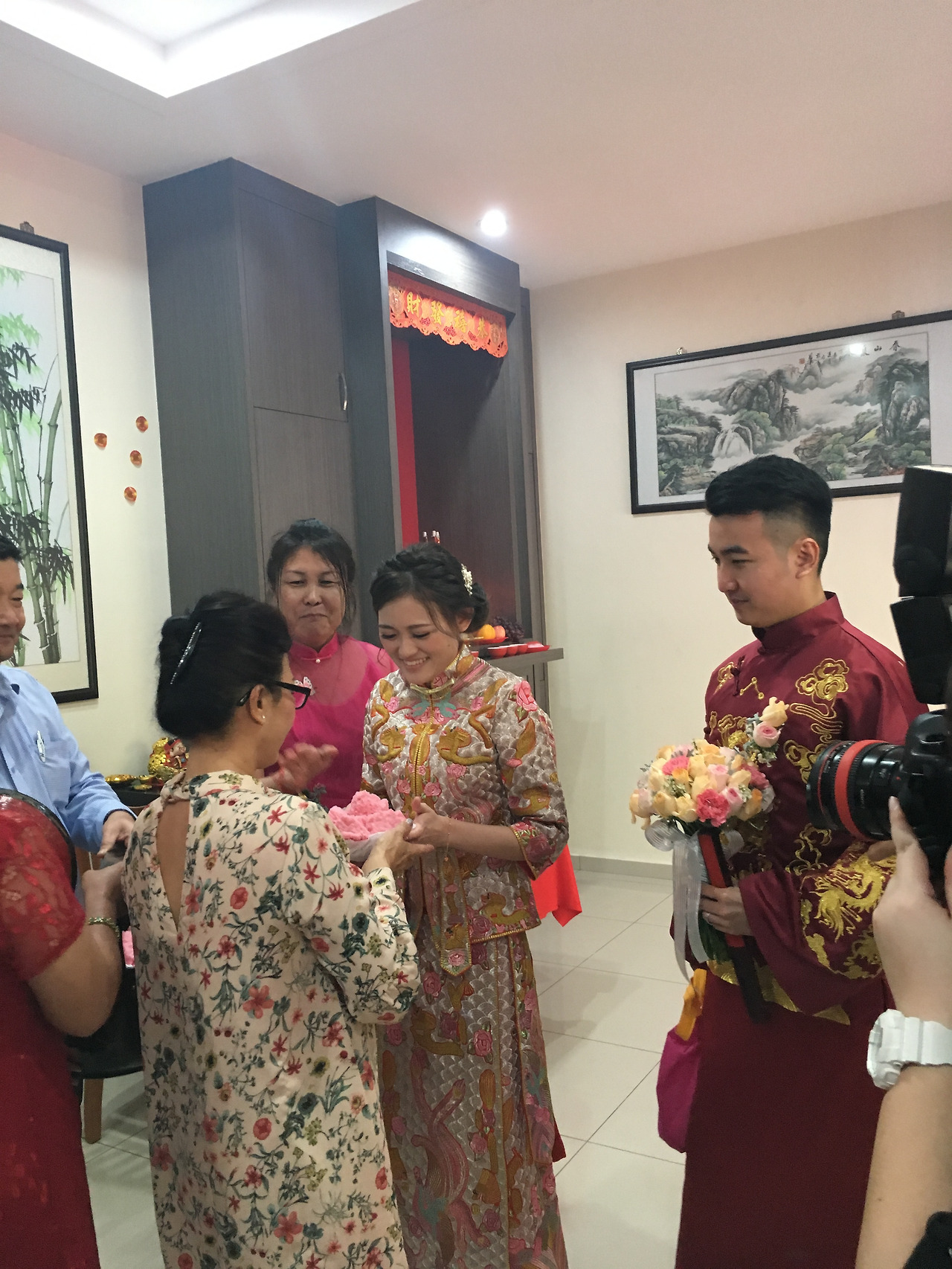 결혼식은 하루 종일 진행되었고 신부댁에 먼저 들려 부모님과 친척들에게 인사를 하고 신랑 집에 2시쯤 신혼부부가 도착했다. 가족들이 신랑 신부와 Tea time이라는 행사를 갖는다 해서 무엇인가 궁금했는데 서로 차를 나누며 친척들과 동네 사람들과 처음으로 인사를 나누고 축복해 주는 시간이었다. 신혼부부는 처음 도착하자마자 조상의 위패를 모신 집안에 있는 불단에 먼저 차를 올린 후 부모님, 형제 친척 순으로 인사를 했는데 차를 받을 때 우리의 축의금 같은 돈을 봉투에 넣어 선물을 했다. 차와 함께 신랑 댁에서 준비한 점심을 먹고 저녁에는 또 다른 파티가 호텔에서 진행되었다. 친구, 친척 등 많은 사람들이 모여 결혼 피로연 파티 형식으로 진행되었고 한국의 결혼식 문화와 굉장히 닮아있다는 생각을 했다.