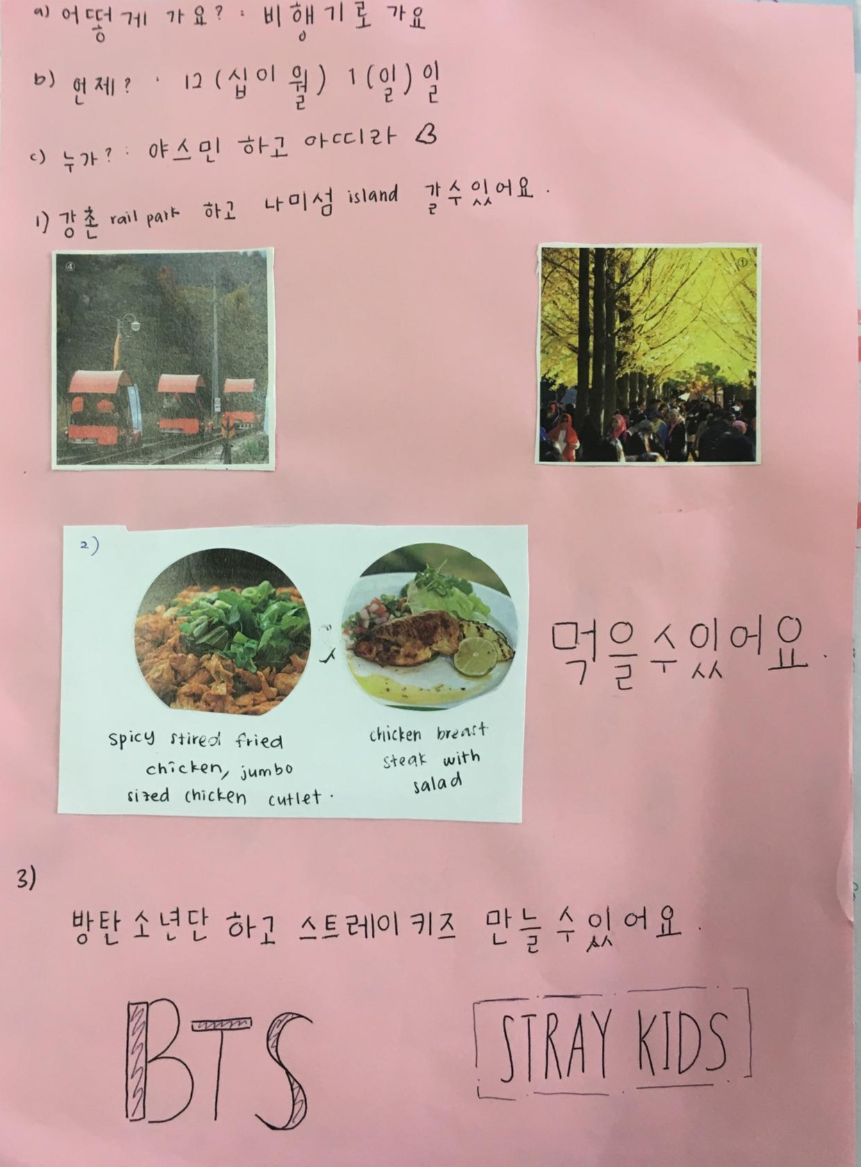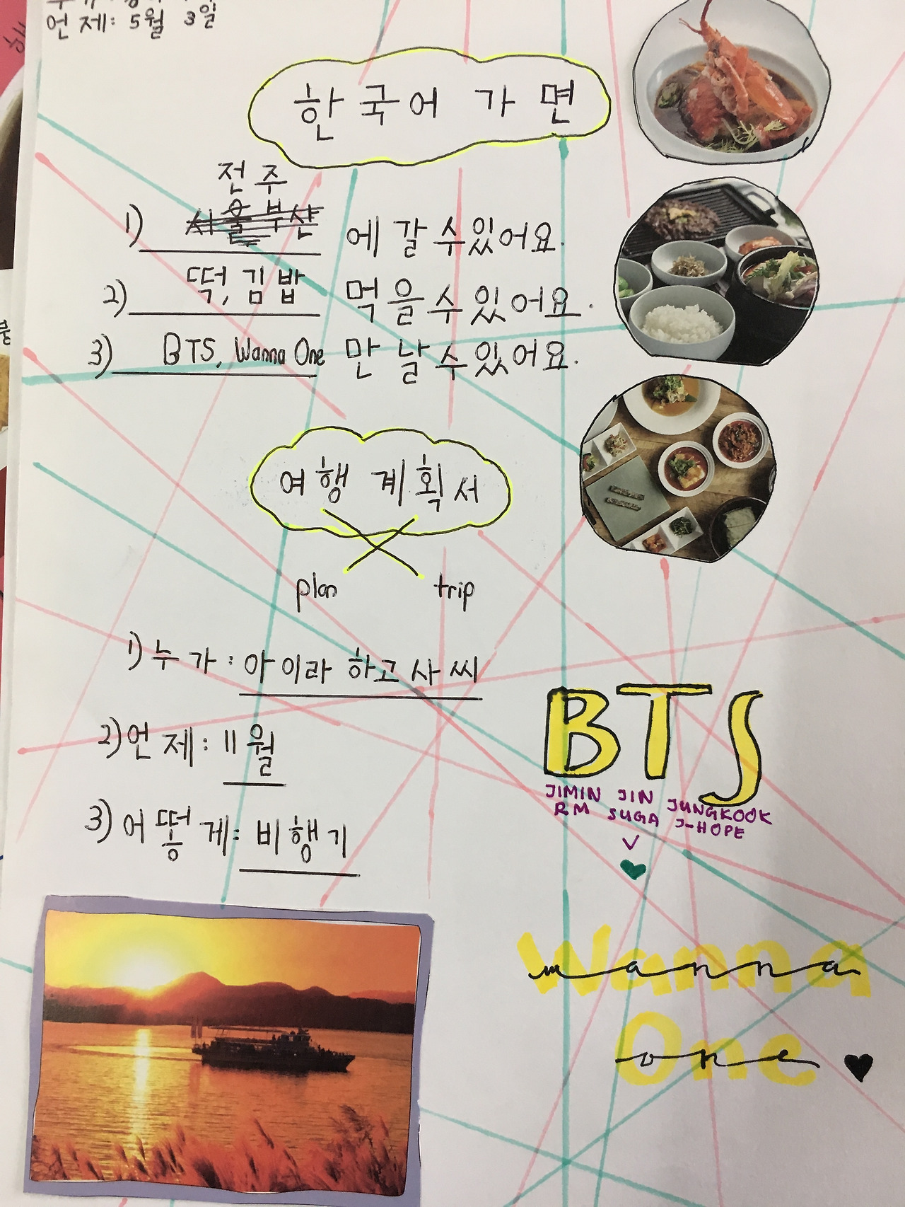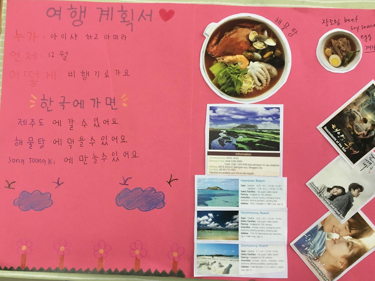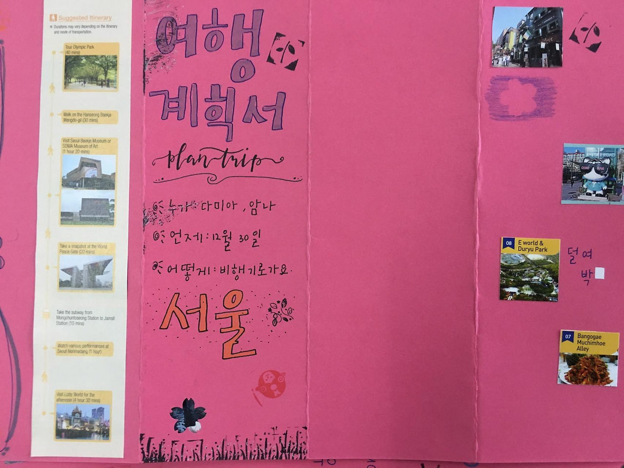 이날은 ‘우리동네에 _____이/가 있어요/없어요’를 배우는 날이었다. 아이들에게 색연필과 종이를 주고 내가 그린 우리 동네 지도를 샘플로 주고, 아이들이 자기 동네를 그려서 우리 동네에 무엇이 있는지 장소명사를 활용한 문장을 만드는 연습을 하고 있었다. “이건 뭐예요?””이건 모스크예요” 내 지도엔 빠져있는 모스크를 모든 학생들이 그리고 있어 “아, 여긴 말레이시아지”를 깨닫고 있는데 ‘Y’의 우리 동네 지도가 눈길을 확 끌었다.이 녀석 그림에 엄청난 재능이 있었던 거였다. "아이고 신은 공평하시네, 아 너무 잘 그렸는데" 호들갑스럽게 칭찬을 건네고 아이들에게 “이것 봐, 너무 잘 그렸죠?”하며 ‘Y’의 그림을 보여주자,여태 한 번도 본적 없는 환한 미소가 교정기를 넘어 ‘Y’의 얼굴에 번진다.
