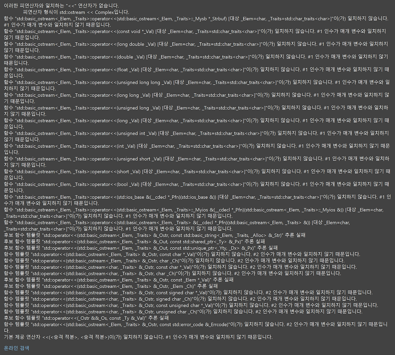Overload하지 않은 Operator를 잘못 사용하면 이렇게 무지막지한 경고 문구를 띄우기도 하더라.