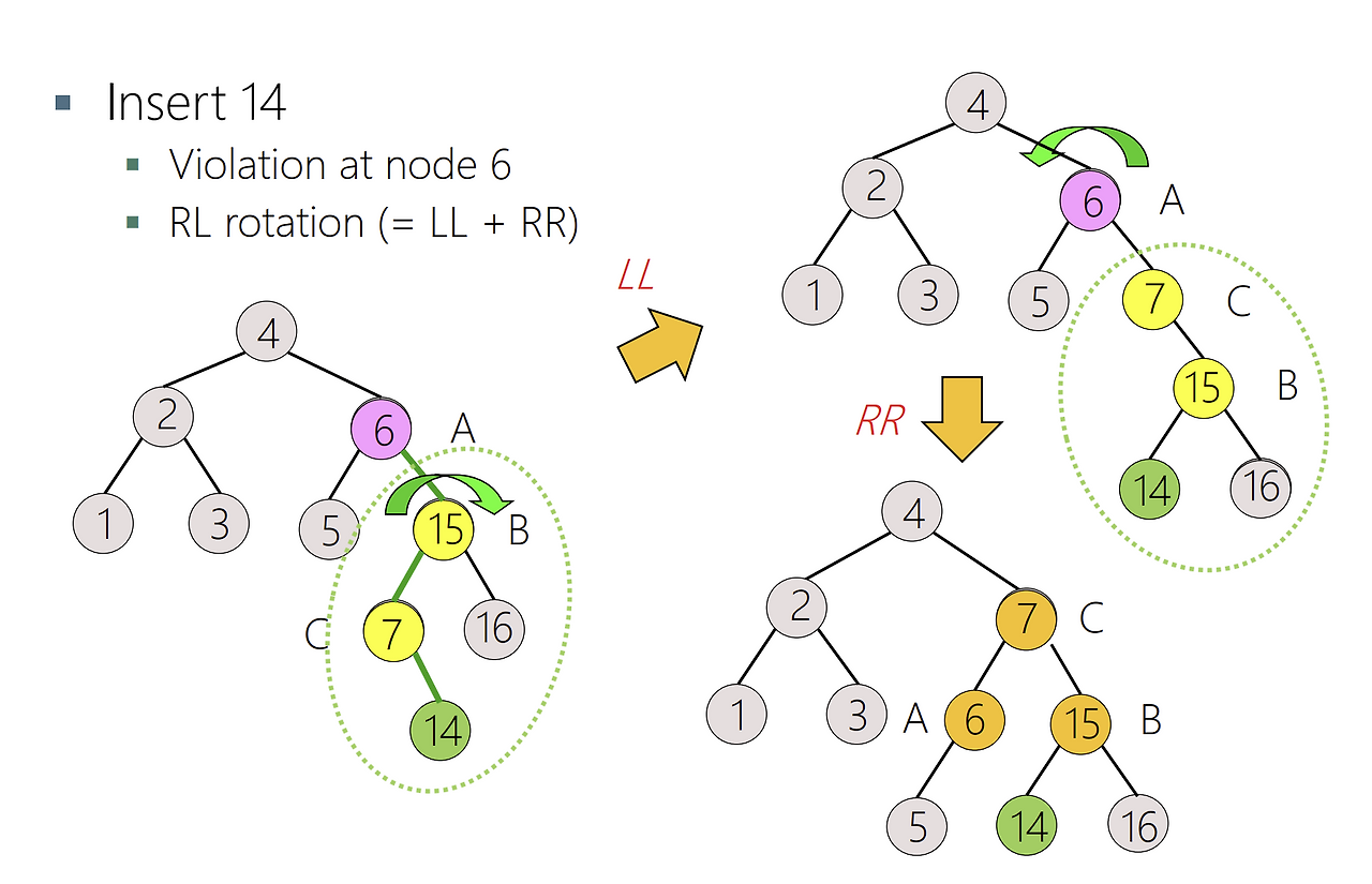 나를 충격과 공포로 몰아넣었던 AVL Tree의 Rotation 예제. Node들을 새로 연결하는 개념으로 접근하면 되지만 'Rotation' 자체에 너무 매몰되었던 것 같다.