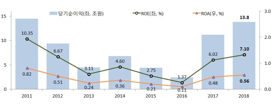 국내은행의 아세안 러시 - 우리은행의 캄보디아 진출을 중심으로 왜 국내은행을 아세안에 진출하는가? ▲국내은행의 당기순이익 및 ROA・ROE 추이, 금융감독원 한국의 은행은 수익성이 낮아지고 있다. 수익성 지표 중 하나인 ROE(자기자본이익률)를 기준으로 할 때, 2019년 3분기까지의 경영실적은 국내 은행의 평균 ROE는 8.13%이다. 이는 작년 동기간과 비교하면 0.5% 상승한 수치다. 또 다른 은행의 수익률을 보여주는 지표 중 하나인 ROA를 보아도 마찬가지이다. 국내 은행의 ROA(총자산이익률) 평균은 0.6