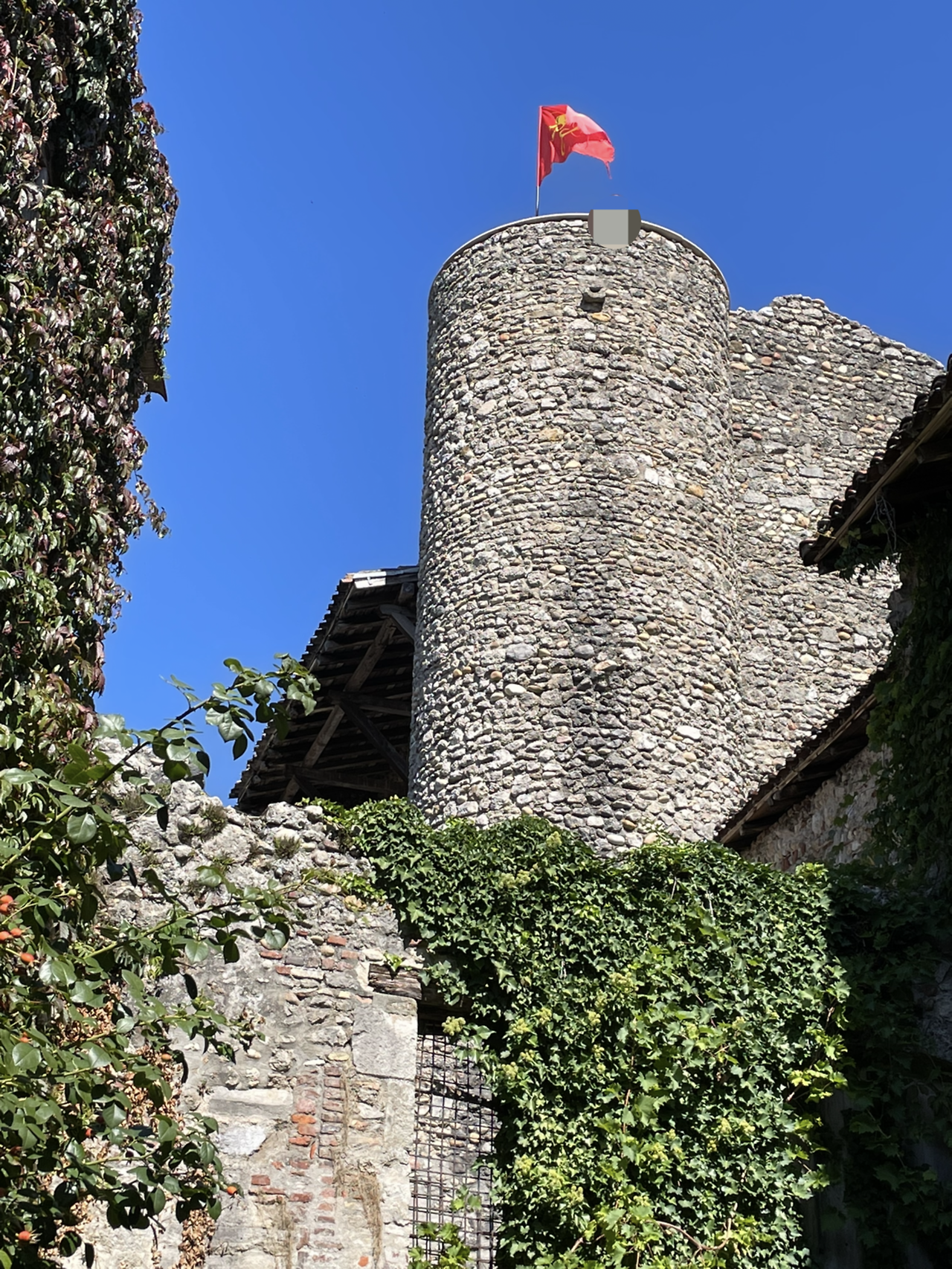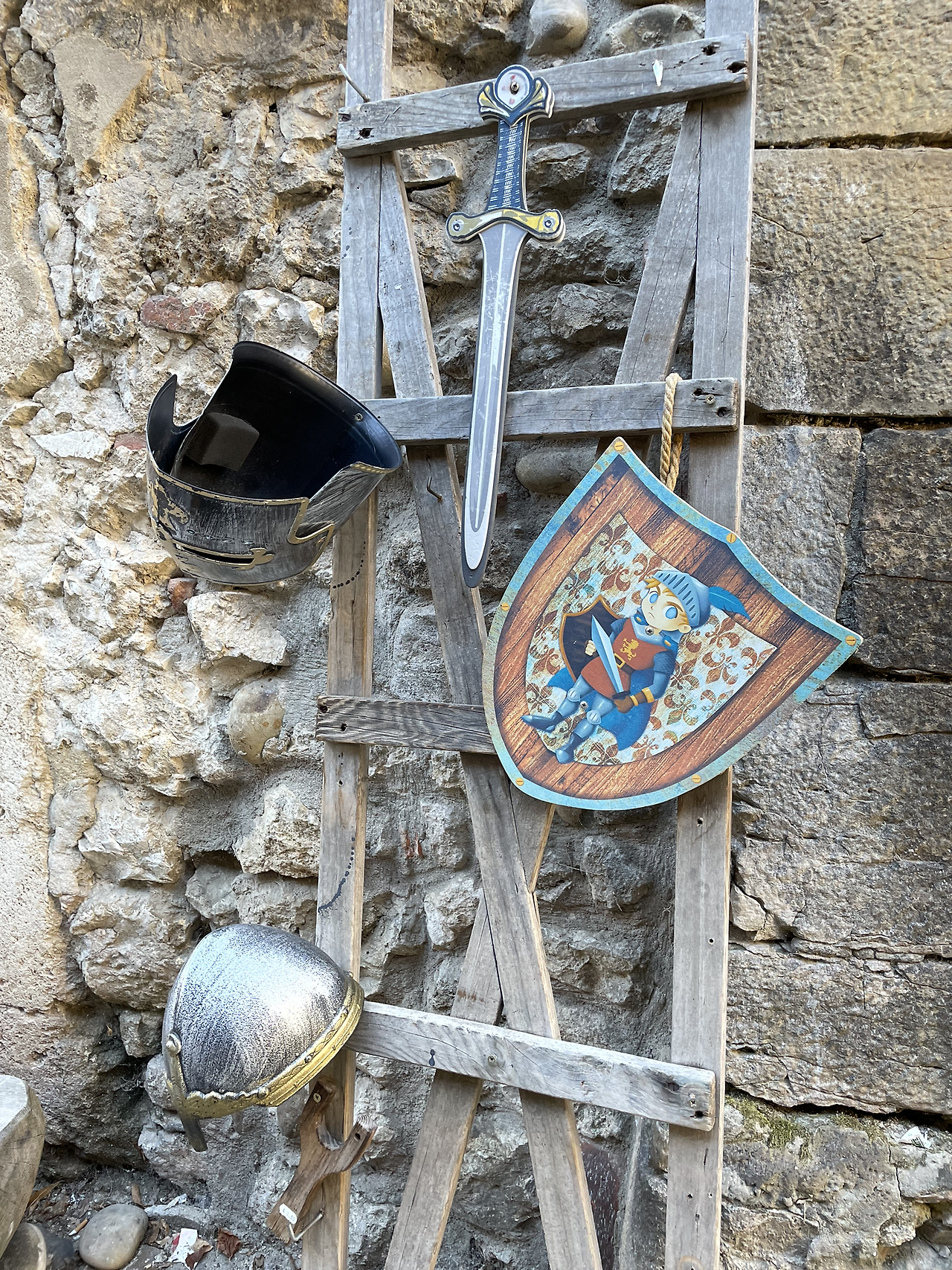 상징적인 투구, 칼, 방패로 마을은 꾸며져 있다.