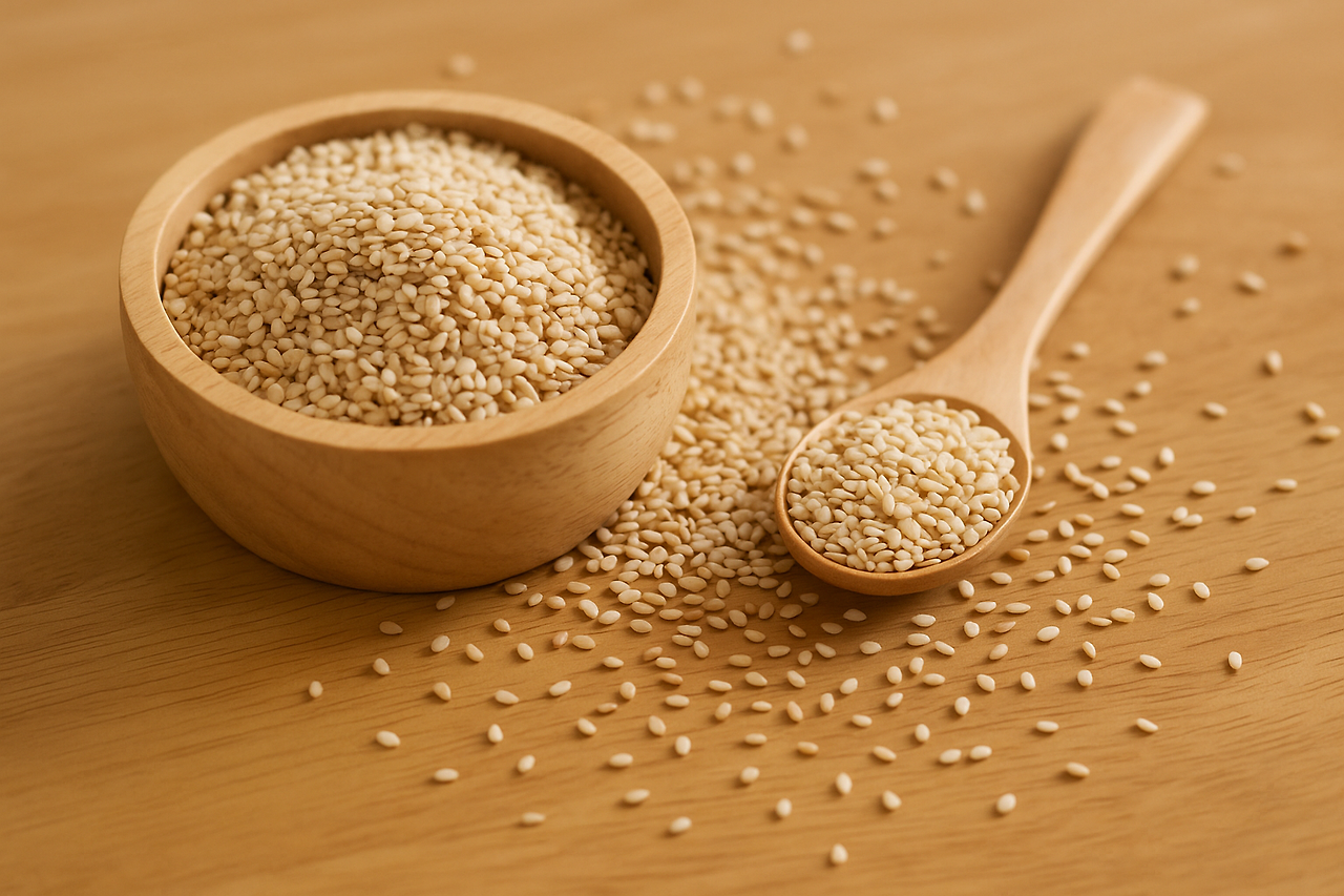 깨소금이 요리에 뿌려질 때 고소한 향과 맛이 한순간 확