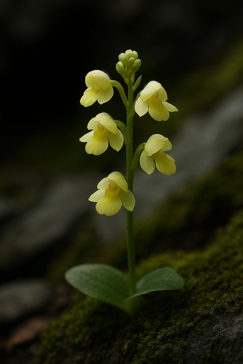 구름처럼 희미하고 병아리처럼 노란, 아주 작은 난초류의 야생화.