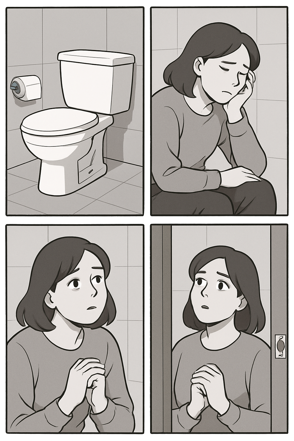 변기 위에선 고민도 고개를 숙이고,