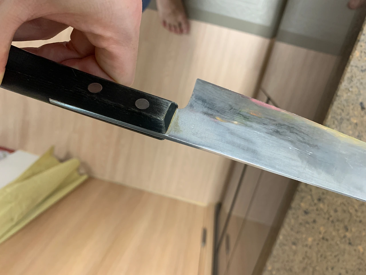 첫 번째 구입한 칼인 행켈은 튼튼하였지만 두껍고, 볼스터가 있어 연마가 힘들었다. 두 번째 구입한 다마스커스는 비싸긴 했지만 이쁘고 얇으며 가볍고 날렵하였다. 하프탱 손잡이의 그립이 불안정하였고 내구성에 문제가 있었다. 운이 좋게도 여러 요소가 겹치지 않는 나이프를 사용해보았고 그 경험이 칼을 보는데 많은 시야를 제공한 것 같다. 이 나이프는 본인이 이쁜칼에 추가 비용을 지불할 수 있으며 채소 등 미끄러워질 염려가 없는 작업을 정교히 할 사람에게 추천한다.