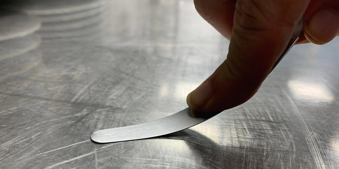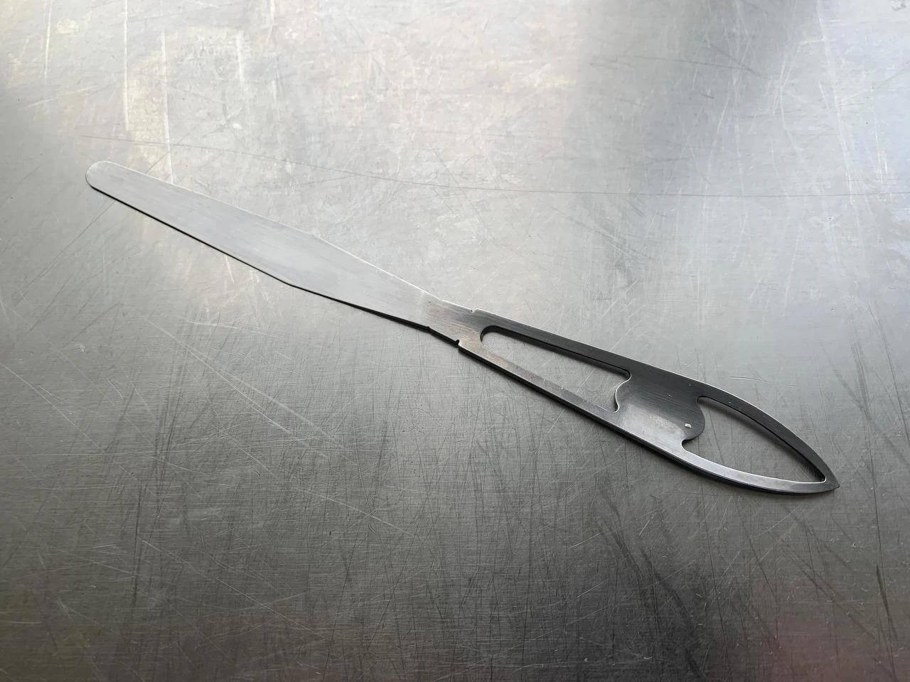 주방에서 흔히 보는 소형 스페츌라와는 미묘하게 틀린 점이 있었다. 내가 아는 스페츌라와 비교하면 디자인뿐만 아니라 날의 얇기, 부드러움, 탄성 등이 좀 더 섬세한 느낌이었기 때문이다. 후배 직원들이 사용하는 것을 한동안 보다 궁금증이 생겨 구글링을 해보고 기물 업체가 업장에 들렸을 때 문의를 해봤는데, 결론적으로 도저히 찾을 수가 없었다.